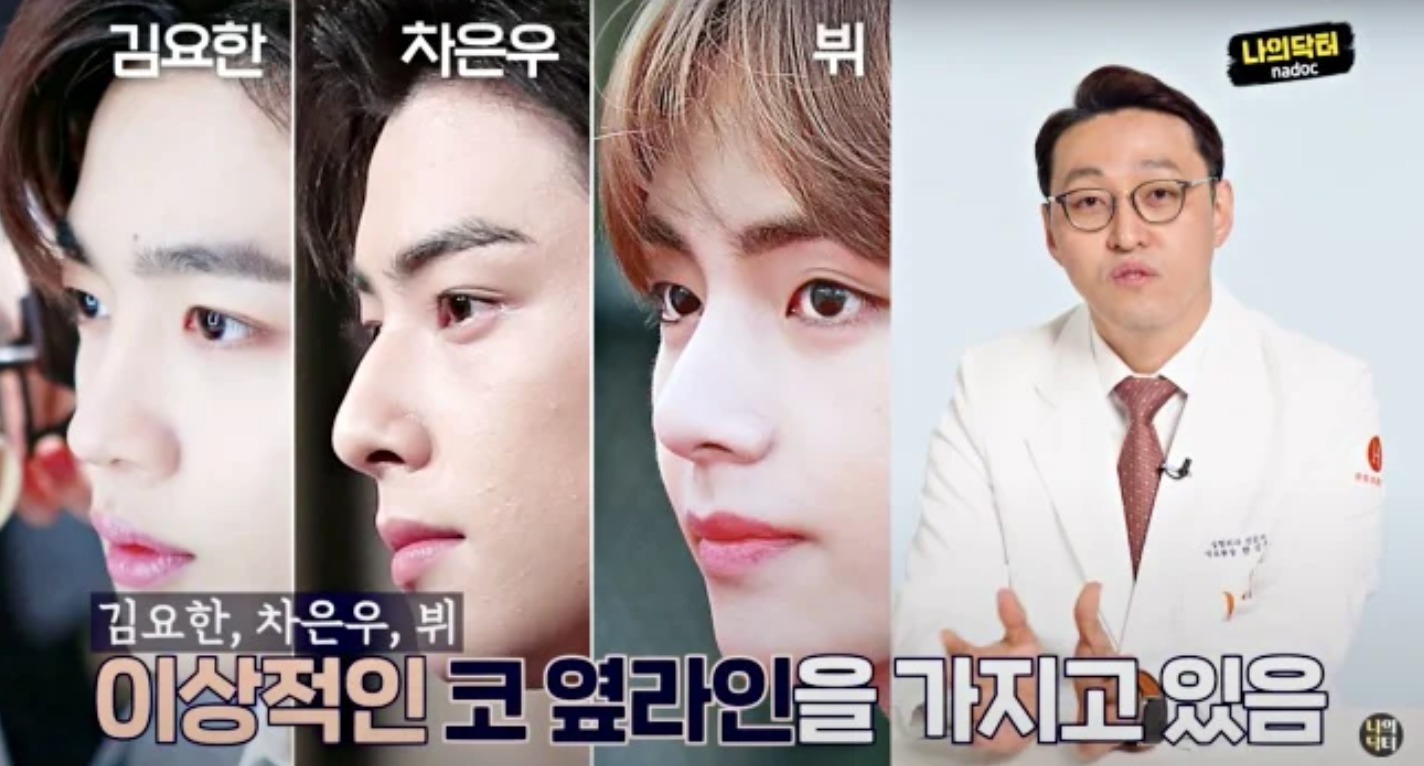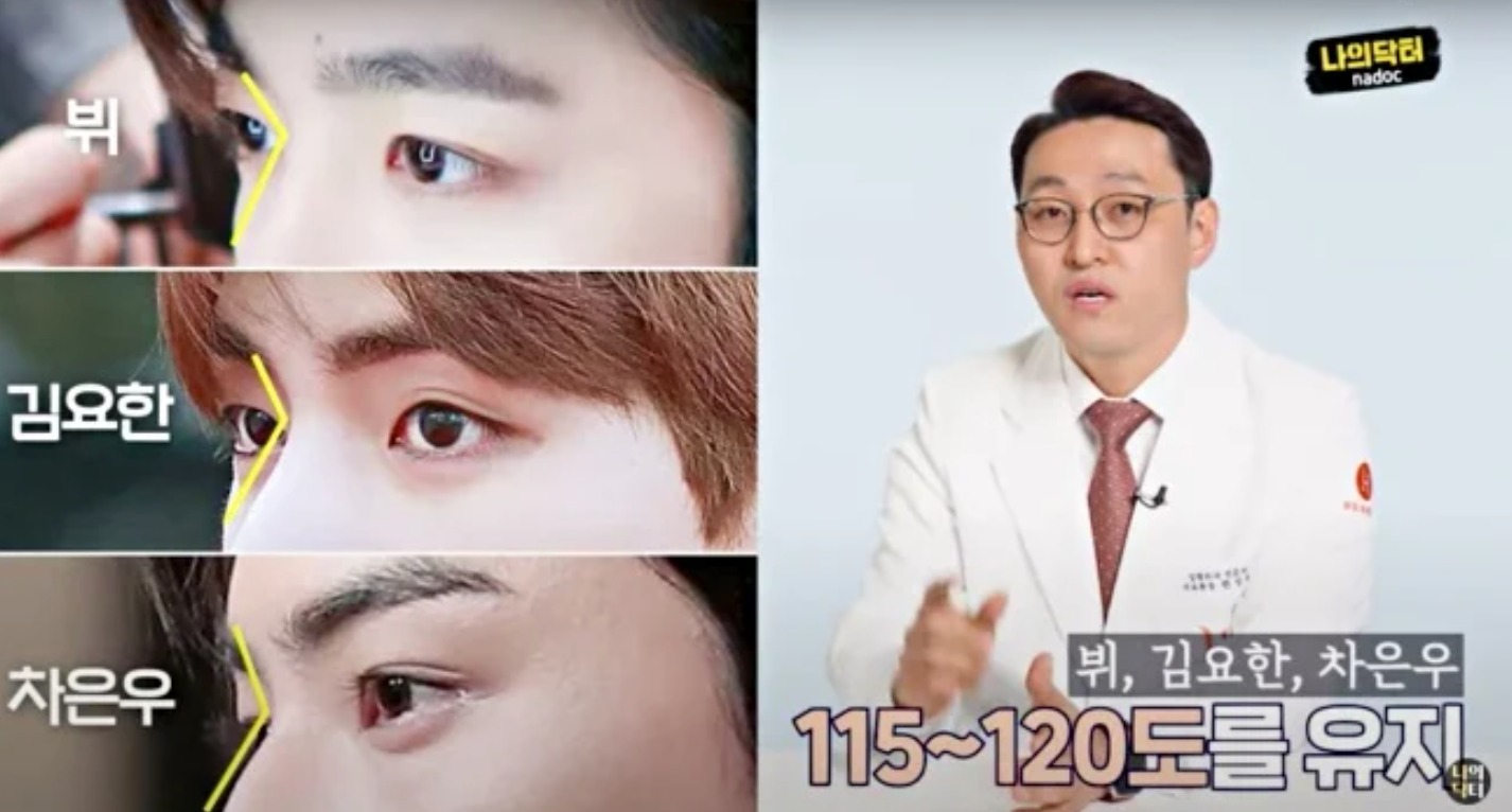 「臉蛋天才」車銀優及防彈少年團成員V一向被認可為美男子,凡是顏值排行榜必定佔有一席位,由額頭、鼻樑到人中的線條都是黃金比例,醫生表示鼻頭落下的角度維持在90至95度之間,代表兩位男子的比例就是活生生的完美直角鼻範本。
