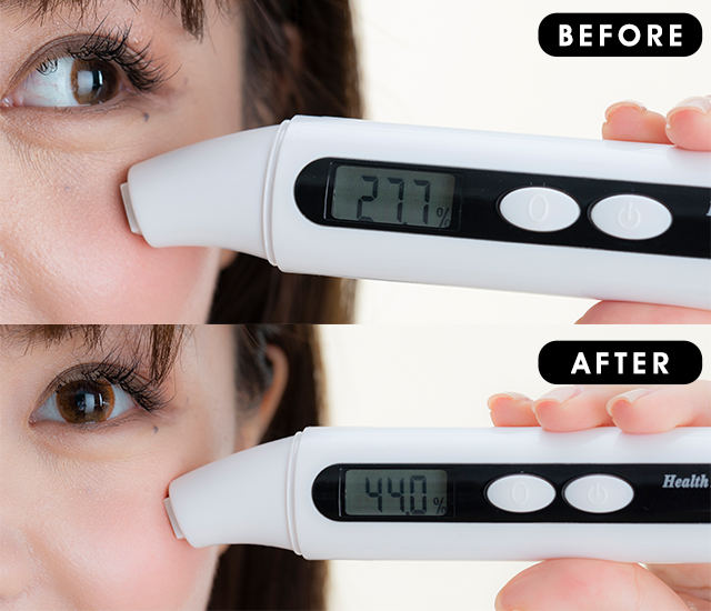 | 皮膚明顯變得更水潤,睇番上妝後嘅狀態,肌膚水份提升16%! |