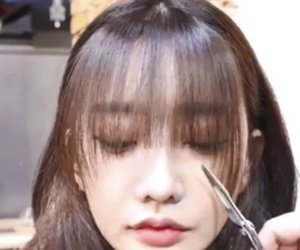 平時大家失手的原因是在於拿起剪刀後便會筆直地由左至右橫向開始剪瀏海,剪髮手勢呈一字,這樣劉海當然會沒有層次,像是拿碗蓋蓋着頭髮剪成的形狀一樣!重點在於劉海要剪成梯形!眼睛對上的部份較短,眼尾對上的頭髮就要較長!