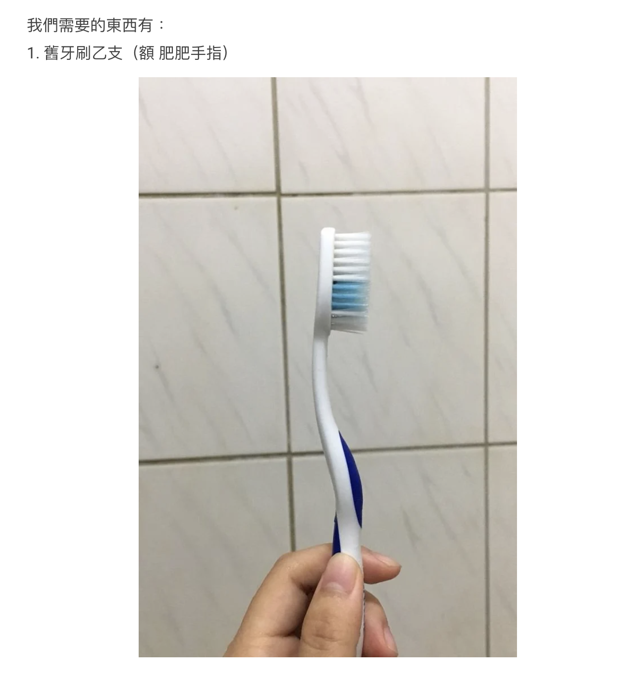 材料:舊牙刷、美白牙膏、紙巾