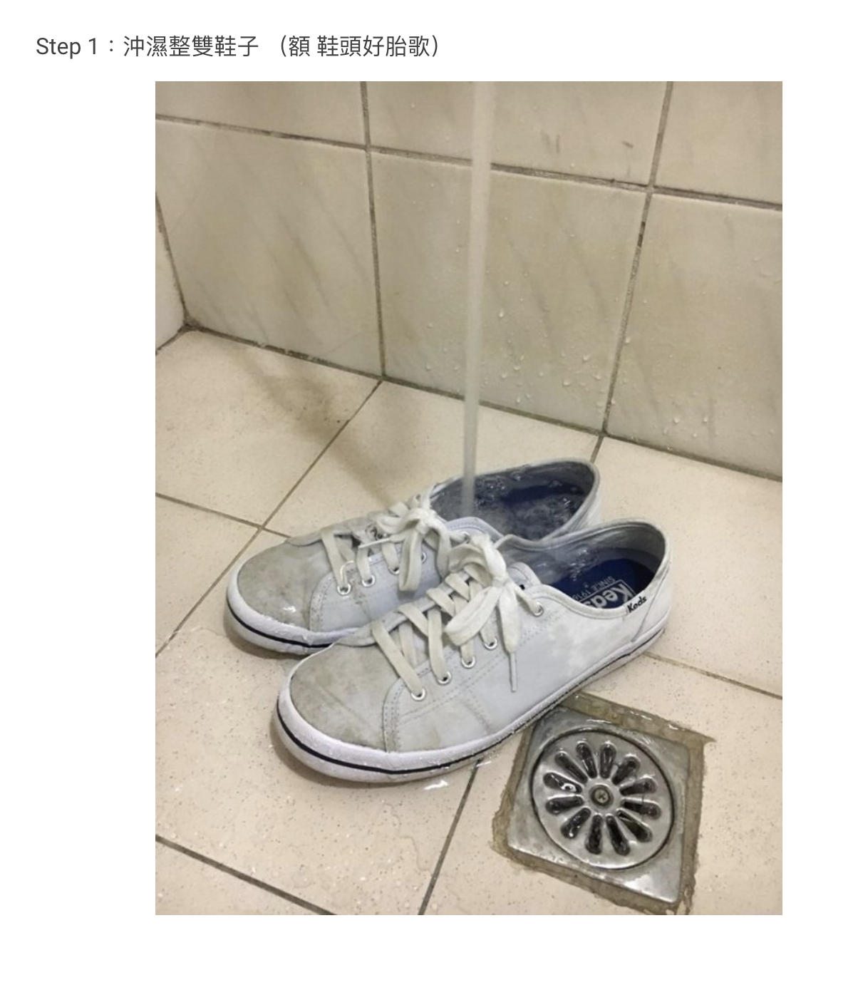 步驟1: 先弄濕白鞋