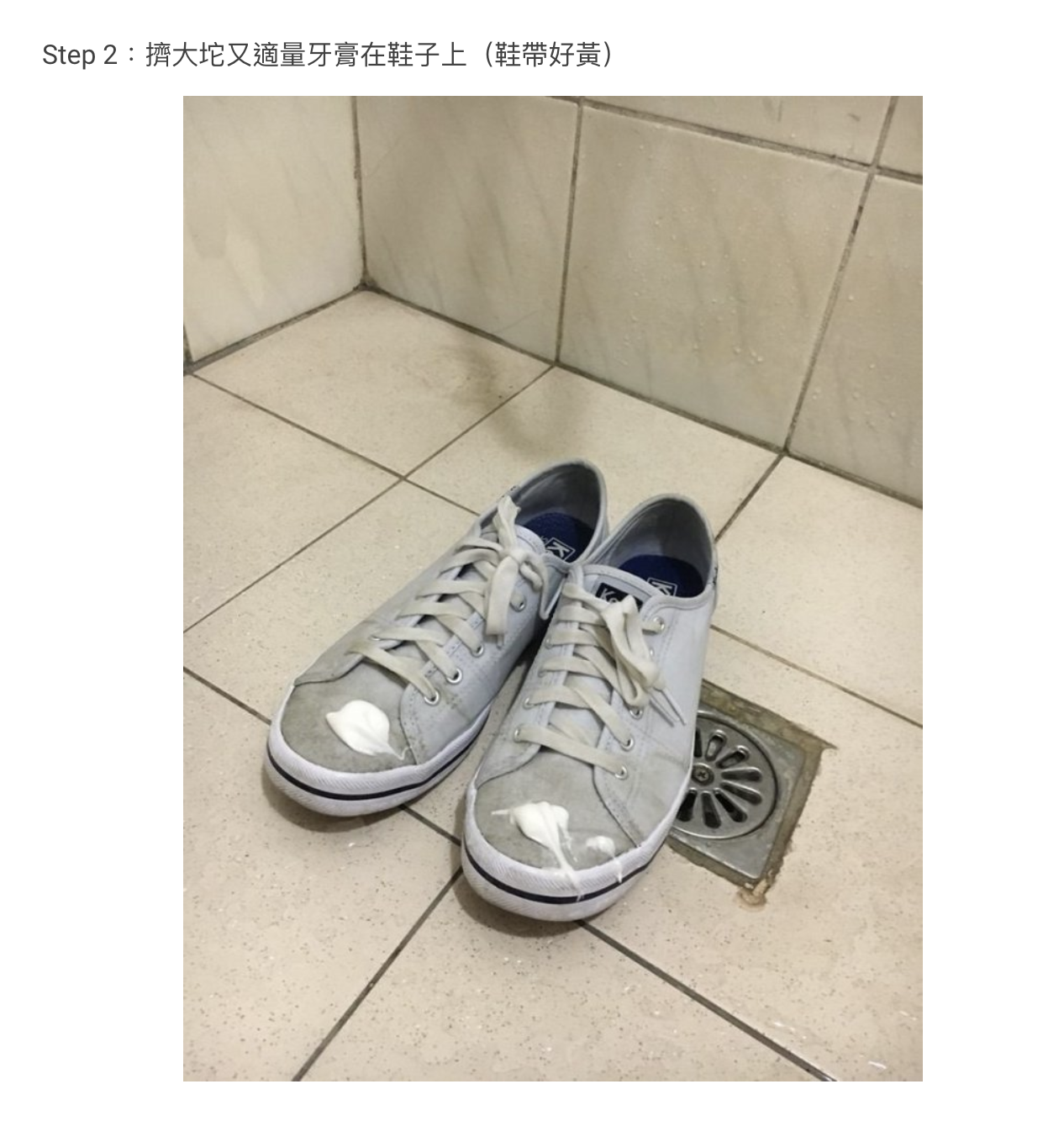 步驟2: 擠上適量牙膏到鞋子上