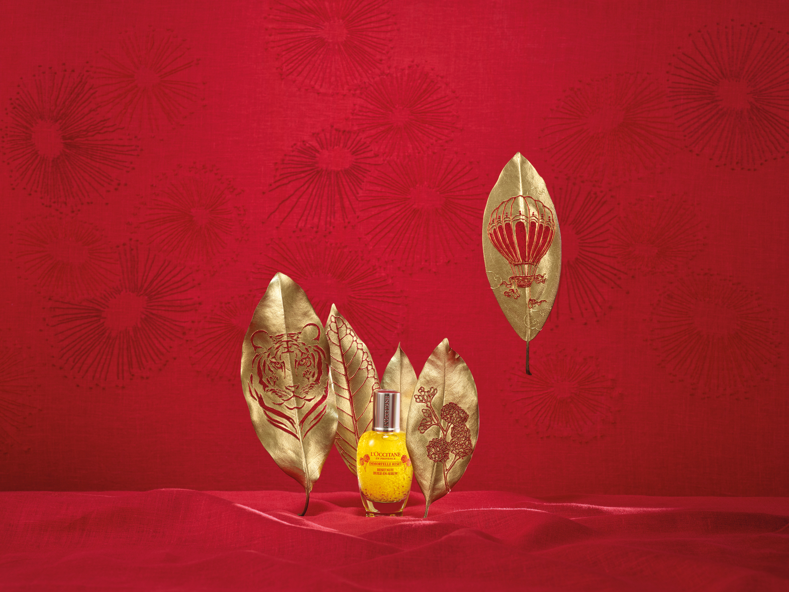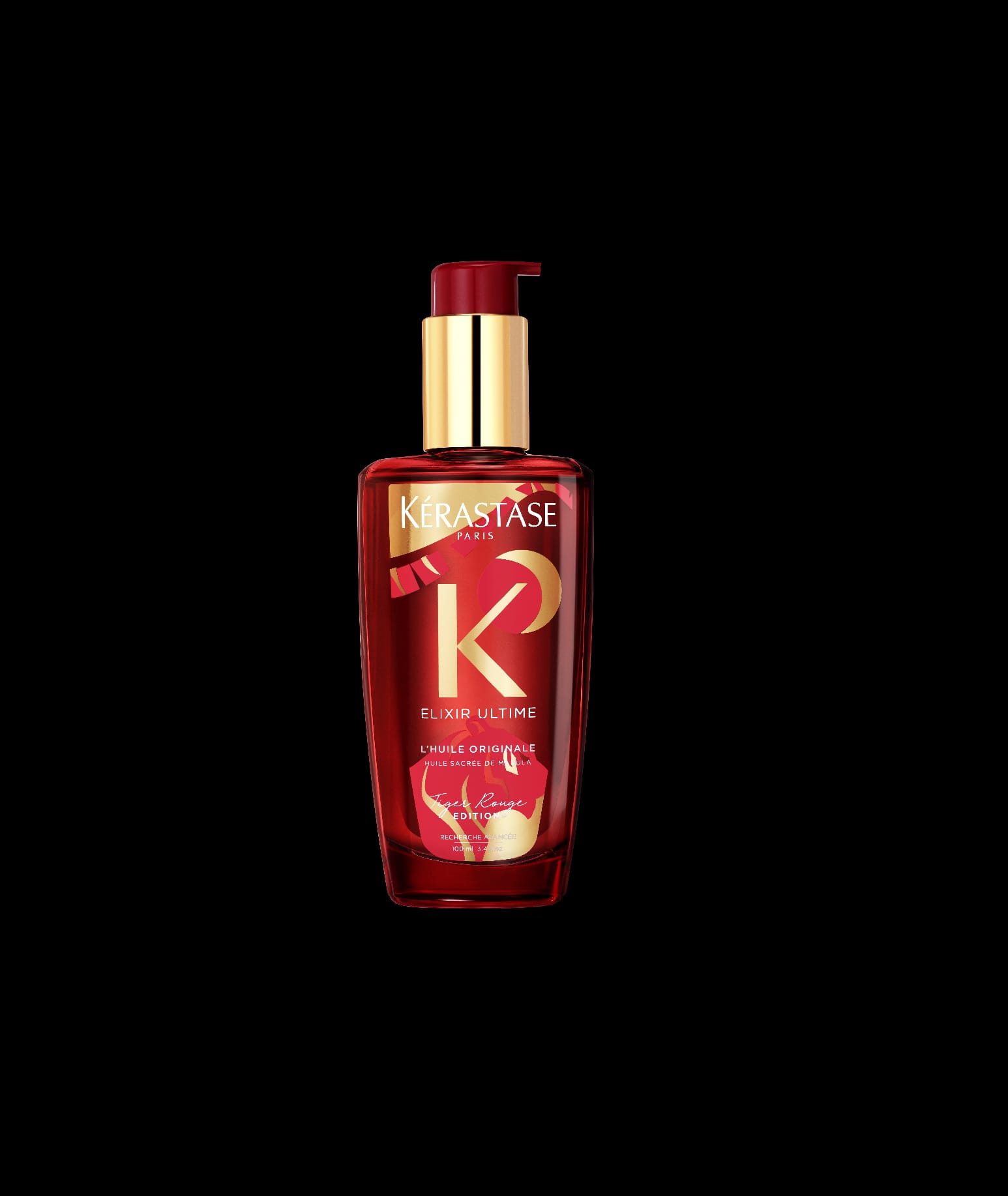 KÉRASTASE 極緻全效修護精華適合所有髮質使用,成分以山茶花籽油製成,當中的油酸及亞麻油能撫平毛燥髮絲,達到深層滋潤功效,令秀髮豐盈柔軟。新一年更推出全新包裝 設計,高貴酒紅色綴上唯美抽象的老虎圖案,象徵呈獻出個人風格!