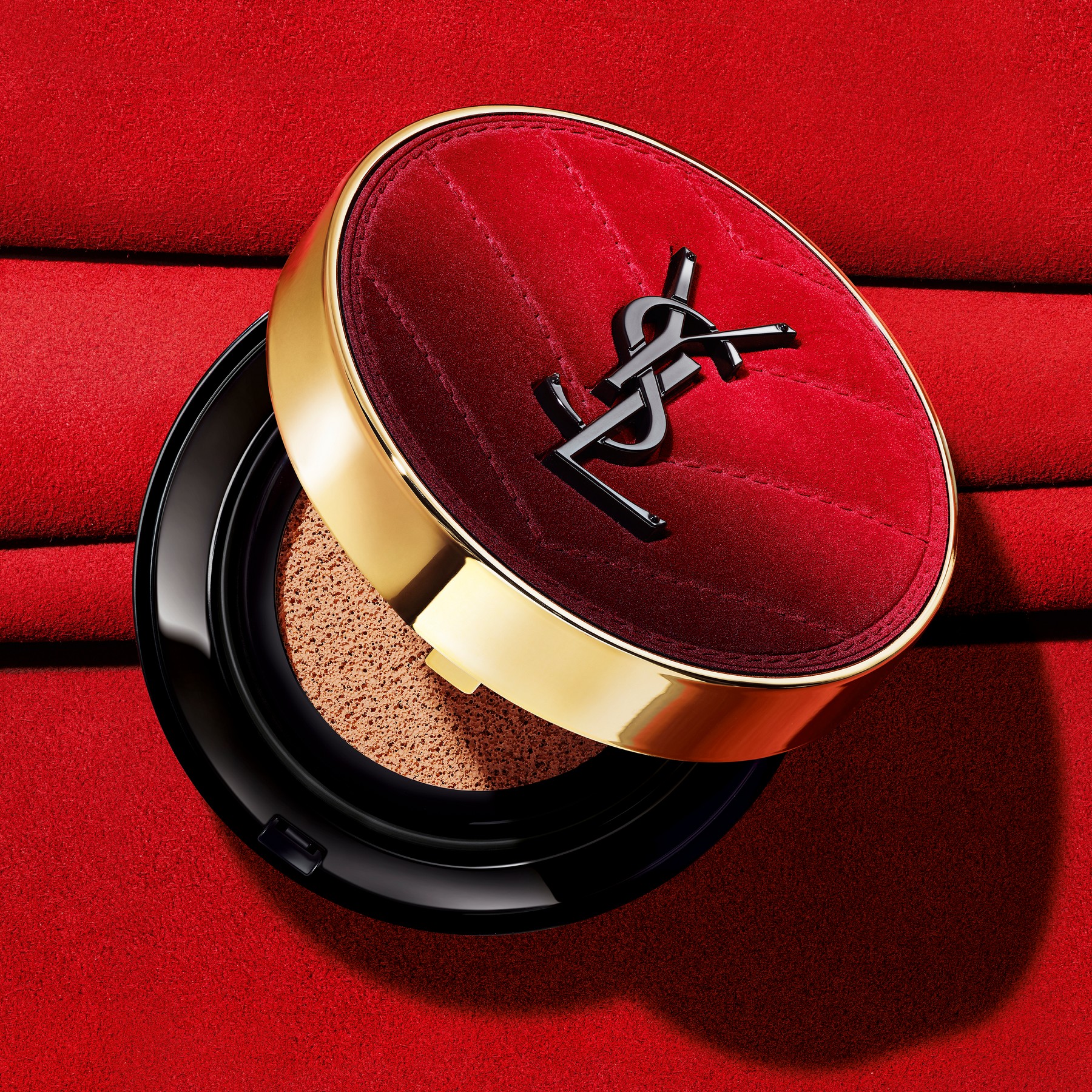 YSL氣墊粉底每年均令人期待新包裝設計,今年換上「絲絨紅」新裝,集高貴優雅於一身,打造舒適貼服妝感。配方加入摩洛哥自家種植的茉莉花瓣,防止底妝變黃氧化,消除肌膚暗啞問題,達到16小時輕透霧光妝感。更加入限量新色#B10及#B20, 切合不同膚色女生需要。