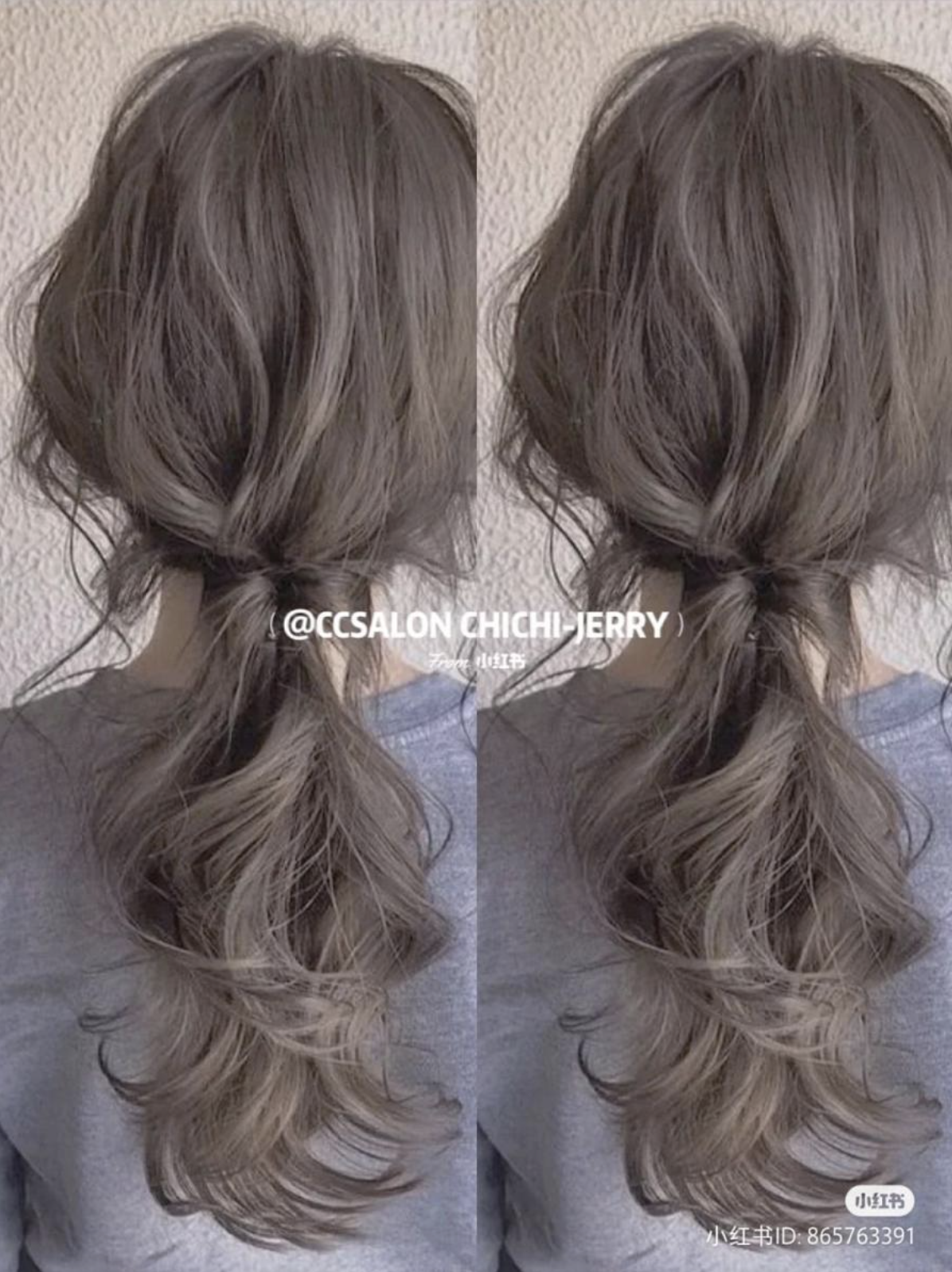 撇除黑色深沉印象後,偏暗髮色挑染後亦可營造光澤度,髮質透出輕飄飄透明感。鉛筆灰底色為淡淡棕色及淡灰色,兩色互相夾雜住,散發陣陣仙氣!即使膚色偏黃的女生染髮,視覺上可亦提亮肌膚色澤,捲髮更顯日常慵懶感。