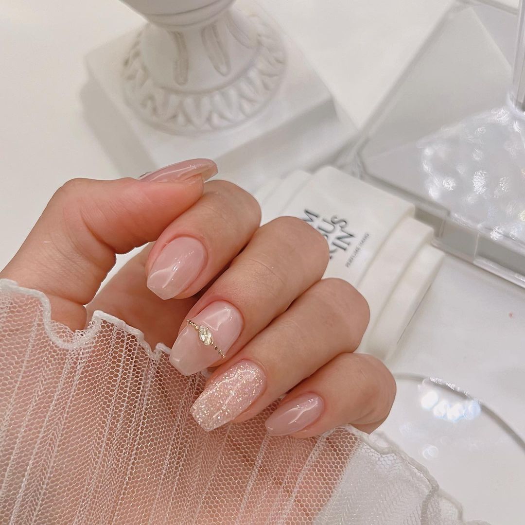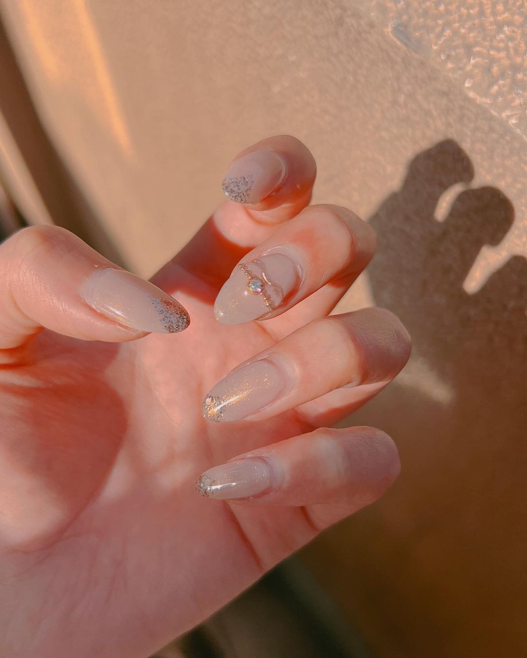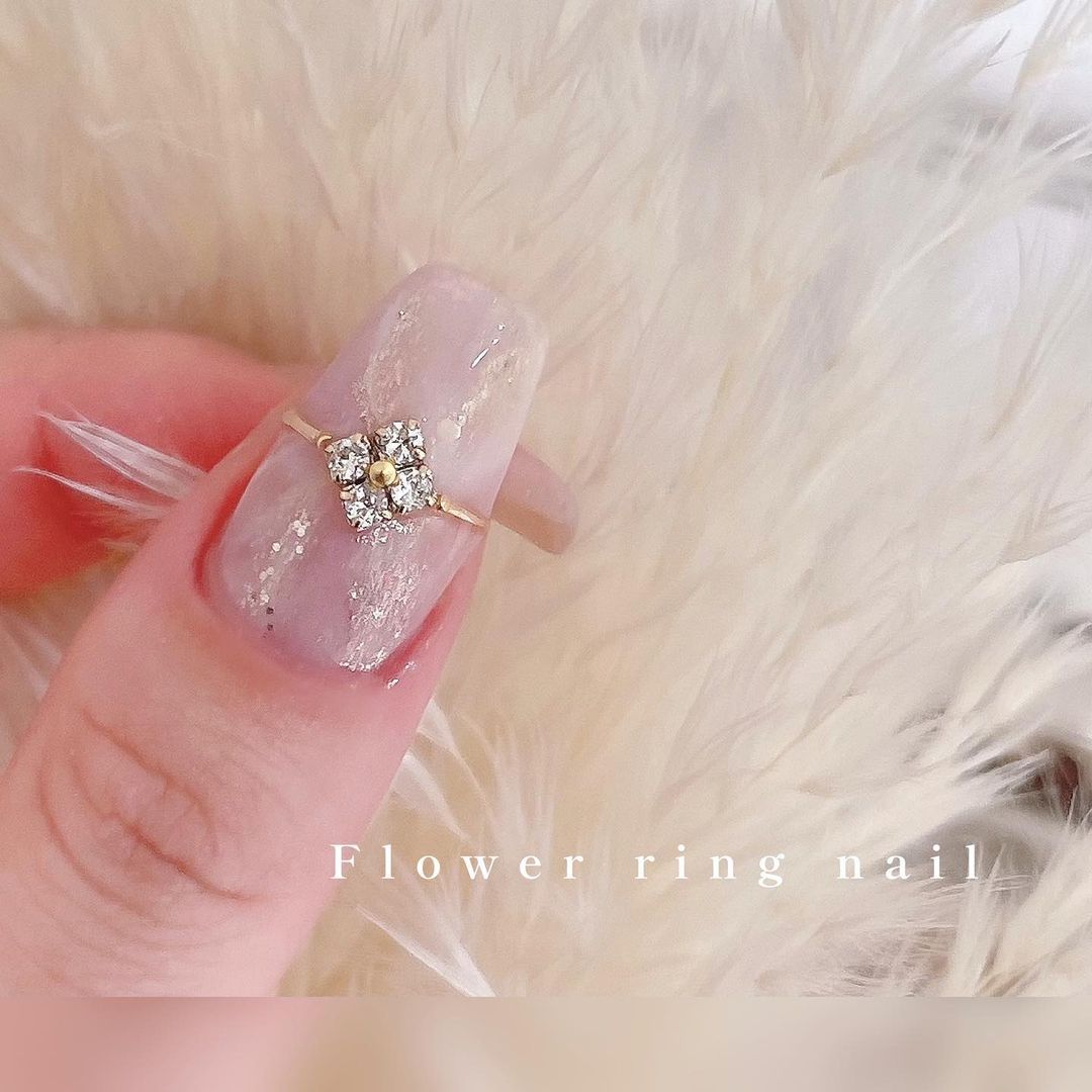 戒指款式中點名率最高的絕對是鑽戒款式,大多以淺粉/清透色作底色,配上修長甲形,就像把神聖高貴的鑽石戒指鑲在指尖上,有種莫名的高級感,令人忍不住一直看住指尖。