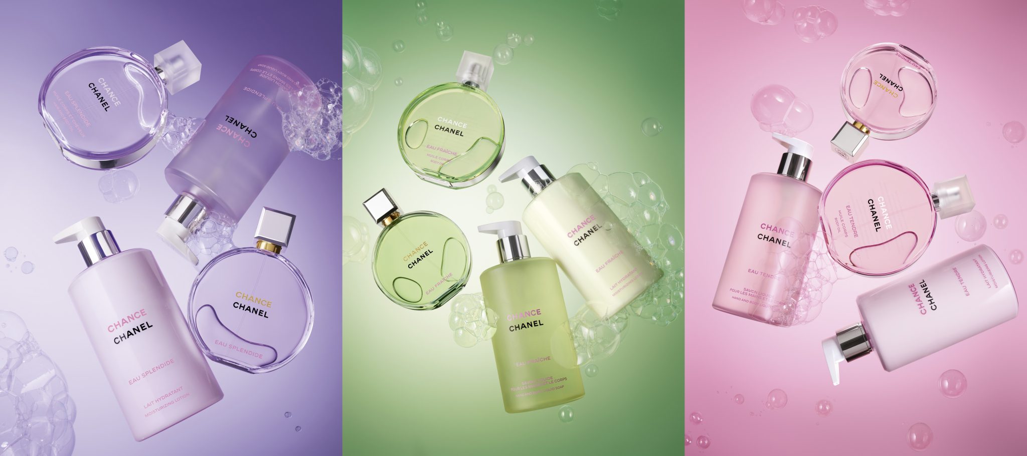 CHANEL CHANCE系列香水今年以獨特新形式示人——THE LIQUID SOAP、THE MOISTURIZING LOTION及THE BODY OIL 香氛護膚油,由潔淨雙手、身體,到滋潤肌膚都被香氣包圍,每日好好享受感官盛宴!