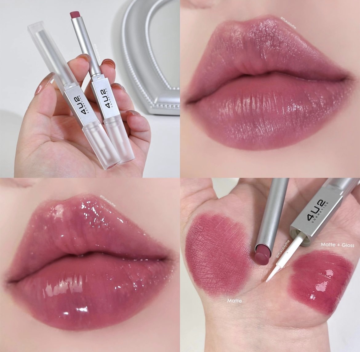 4U2日前推出唇部新品雙頭唇釉,一邊是霧面唇釉,另一邊是透明唇蜜,疊塗後唇以為雙唇增添豐盈飽滿感,打造bling bling水嫩光澤感,而雙頭唇釉只需約$42 (199泰銖),相當划算!