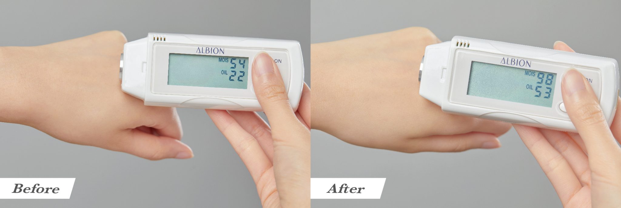 使用平衡滲透乳後,肌膚水油回復理想水平。