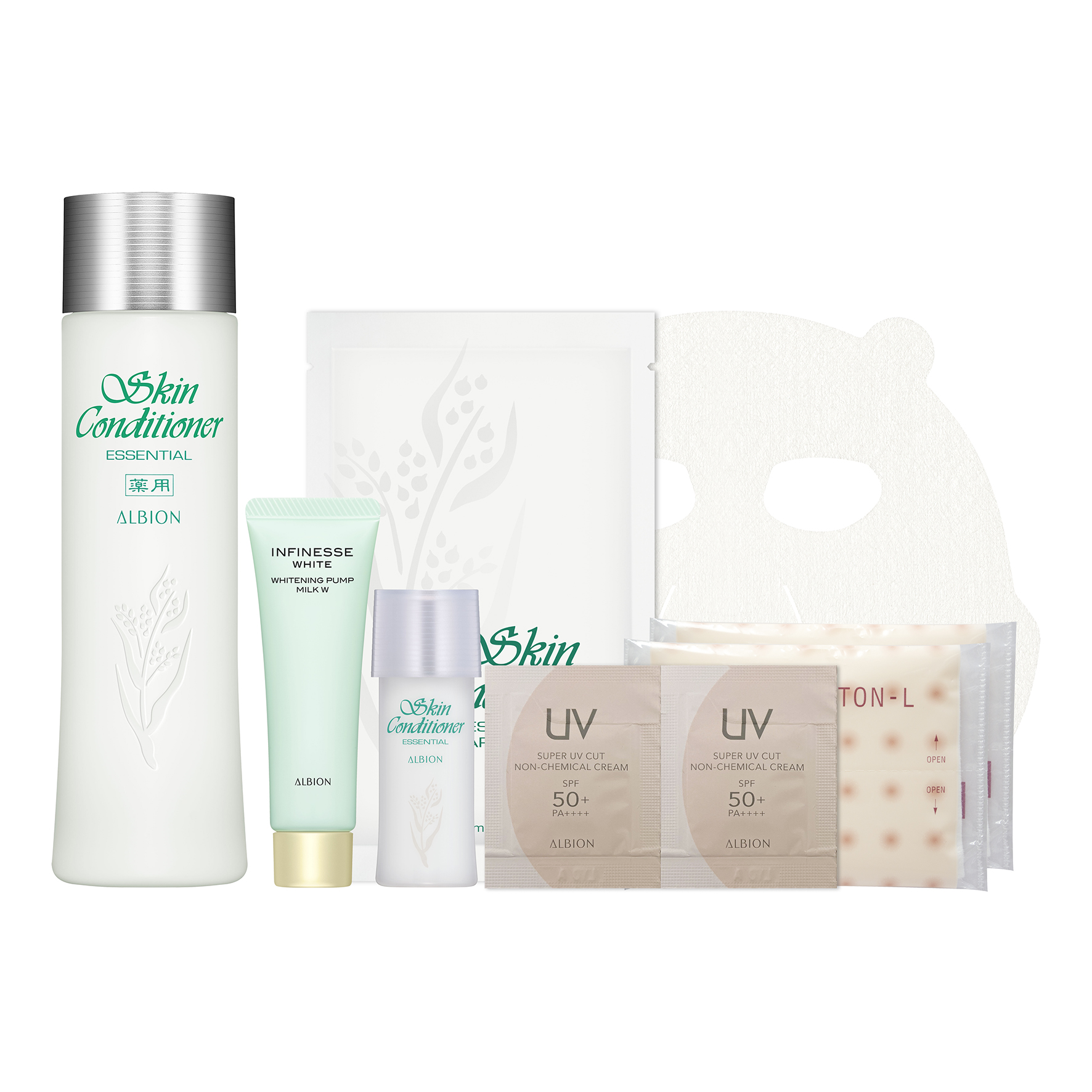 想立即體驗 ALBION 健康水 N 的升級功效?由即日起至 7 月 31 日 ,登入 Sogo eStore 入手健康化妝水套裝 HK $700 (價值 HK$915) , 當中包括健康化妝水 N 330ml 、 賦活潤白緊緻滲透乳 W 30g 、健康化妝水 N 27ml 、健康面膜 N 14ml、全物理性溫和輕透防曬乳 2g 及高級綿柔化妝棉體驗裝 2 包。除了 ALBION 皇牌健康化妝水及面膜,套裝中更含有今年新推出的物理性防曬乳,一次過試勻各種皇牌新品!溫和配方不但防水,更可加強肌膚的屏障,實行全方位保護皮膚,再也不怕肌膚在夏天受到侵害