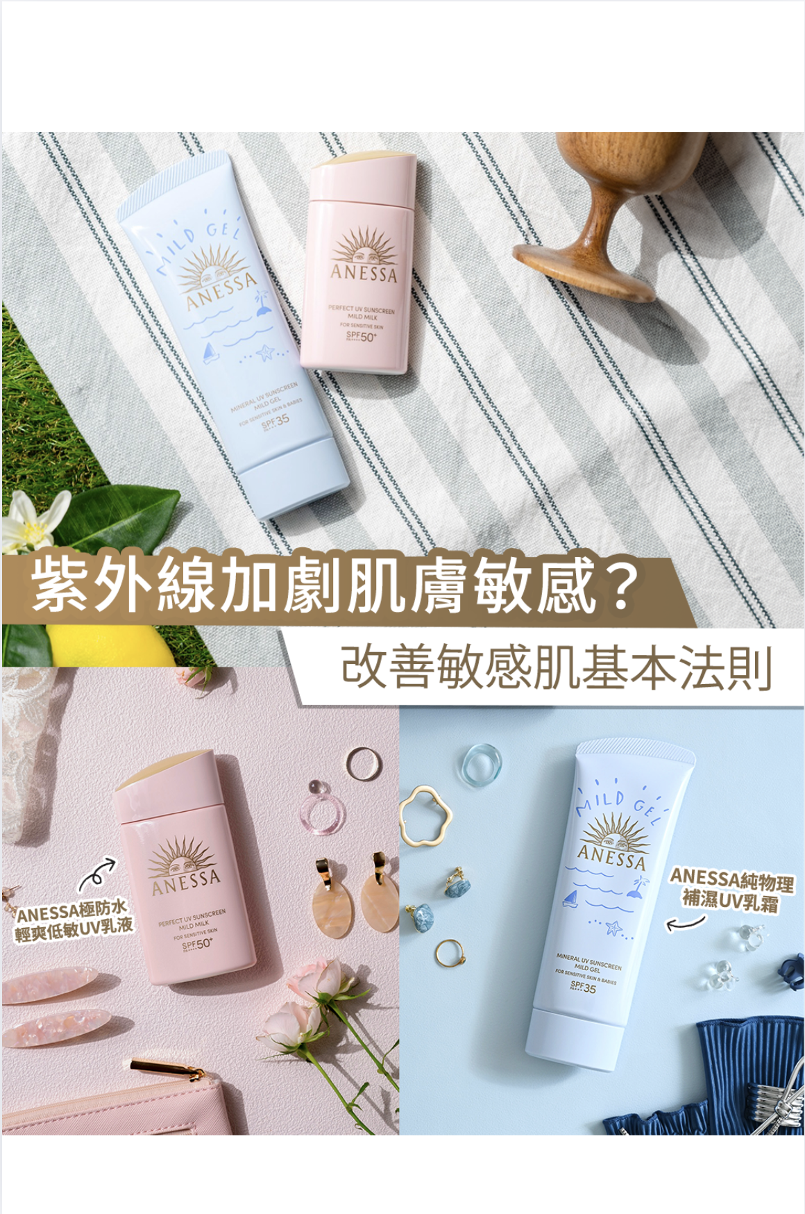 雖然深明搽防曬的重要性,但作為敏感肌小編亦曾擔心防曬會對皮膚造成刺激,直到遇到敏感肌的命定防曬——亞洲銷售No.1防曬品牌^ANESSA低敏系列,當中蘊含50%植萃護膚精華,有效預防光老化引起的乾燥及細紋。加上不含酒精、防腐劑PARABENS、礦物油、香料及色素,及通過皮膚科醫生測試~小編特別大愛它只需要用一般潔面產品就可以卸除,減少額外清潔為肌膚所帶來之負擔,對敏感肌而言絕對是非常友善!