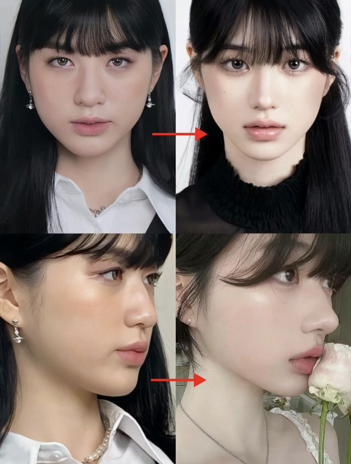 從對比圖可以看出,Arin的五官得更立體,眼睛大而有神,鼻頭更翹,就連下鄂線都變得清晰可見!