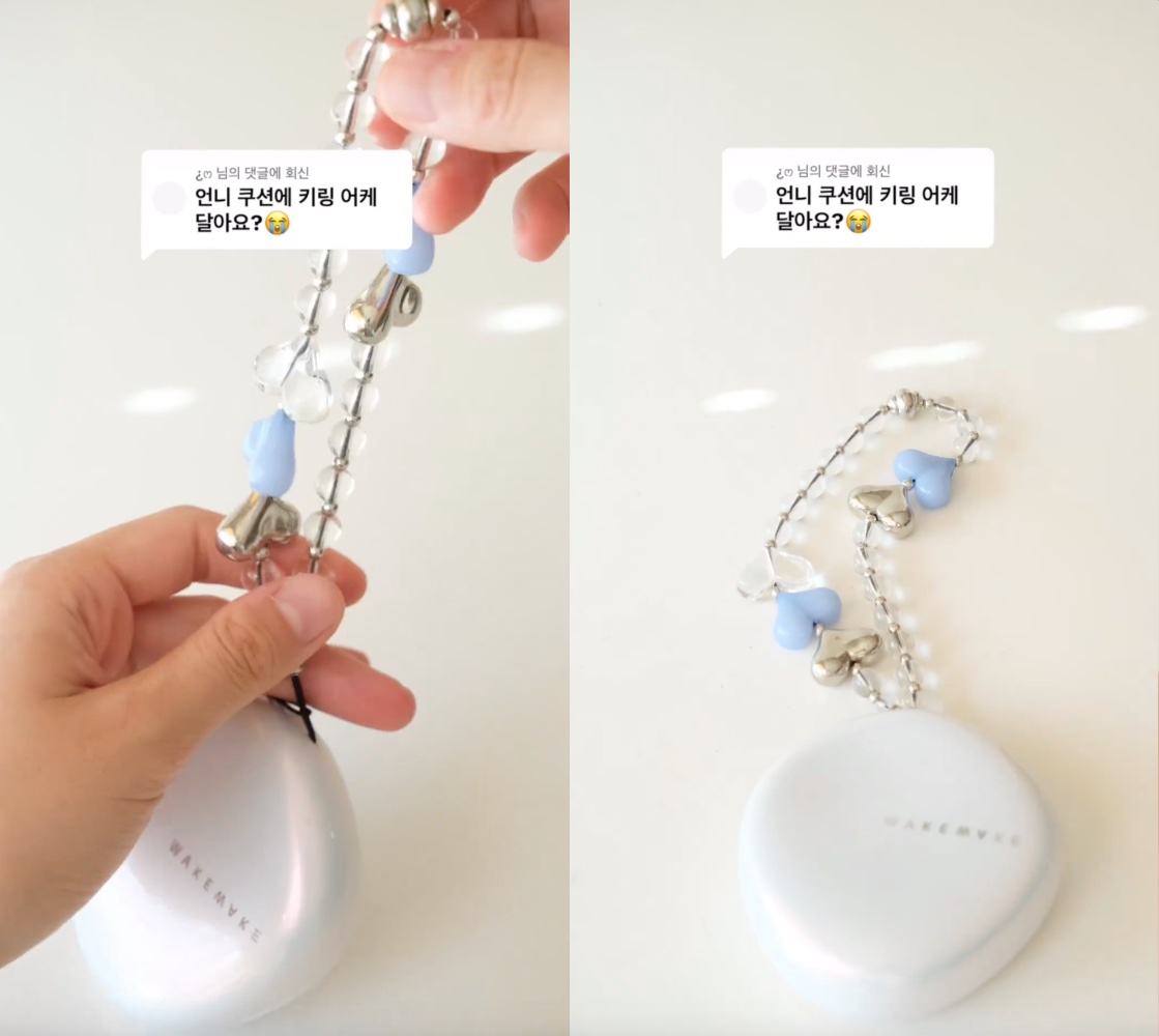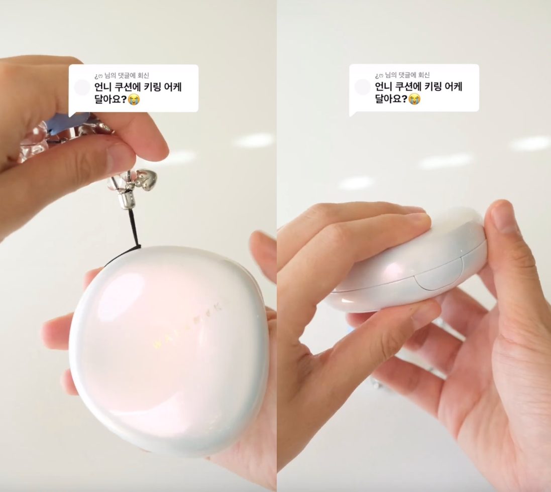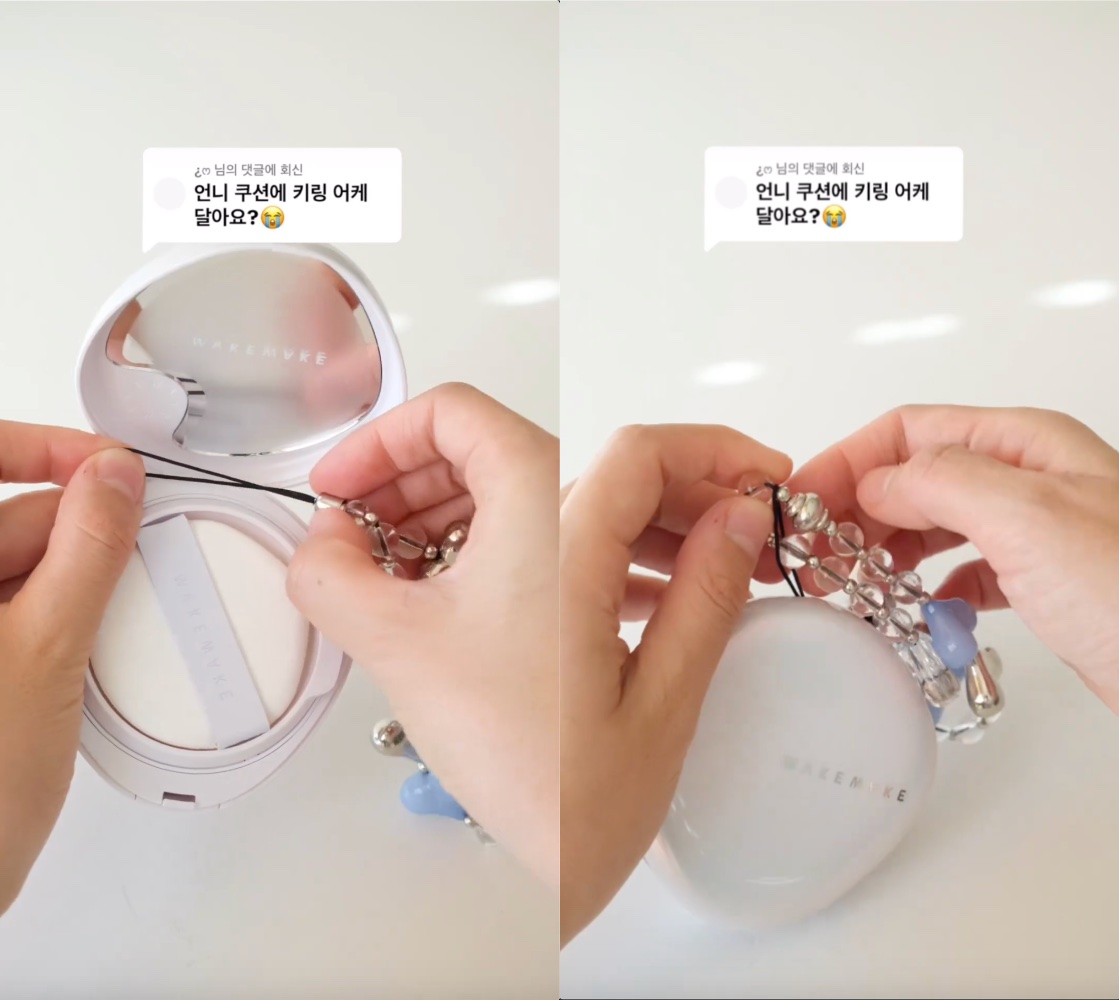 早前不少韓星的手機上都掛住串珠鍊,令手機串珠鏈重新引起一陣熱潮!這個風潮最近更蔓延到美妝界!有韓國女生就將串珠鏈掛在BB Cushion上,將氣墊粉餅打造成最新潮物! 只需要將串珠鏈穿過開合骹位,然黎再將串珠穿過黑色繩的部分,即可牢牢扣在Cushion盒上! 雖然Cushion加上串珠鍊做裝飾,但依然可以合上外盒,各位sis無需擔心~ 簡單一個小飾品就可以令你的BB Cushion可愛感倍增,各位sis都不妨一試! BB Cushion手機串珠鍊潮物 BY Yuli 28 November 2023