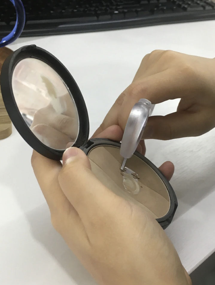 其後這位網民又po出另一張照片,相中人用鉸剪刮走修容粉,令它出現鐵片,並指「好用的定義就是『是否用到鐵皮』」、「有幾個人能真正把每個東西都用到鐵皮呢」。