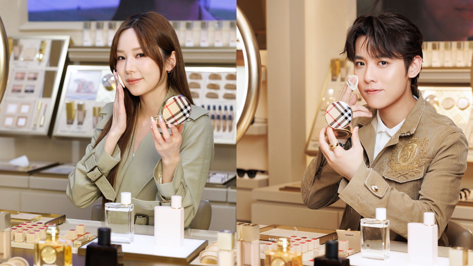 歌手曾傲棐Arvin及李靜儀Heidi除了要應對在不同的環境、天氣下工作,更著重的是鎂光燈下的妝感。 Burberry Beyond Wear 持妝霧柔風衣氣墊粉底能滋潤肌膚同時締造自然無瑕的持久啞緻妝效。其輕盈透氣配方,瞬間與肌膚融合,並提供中至高度遮瑕效果,亦有效均勻膚色和淡化毛孔細紋,𣊬間塑造柔焦美肌效果,即使面對鎂光燈都可以隨時保持最佳妝效示人!