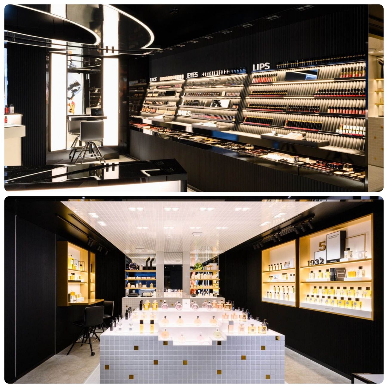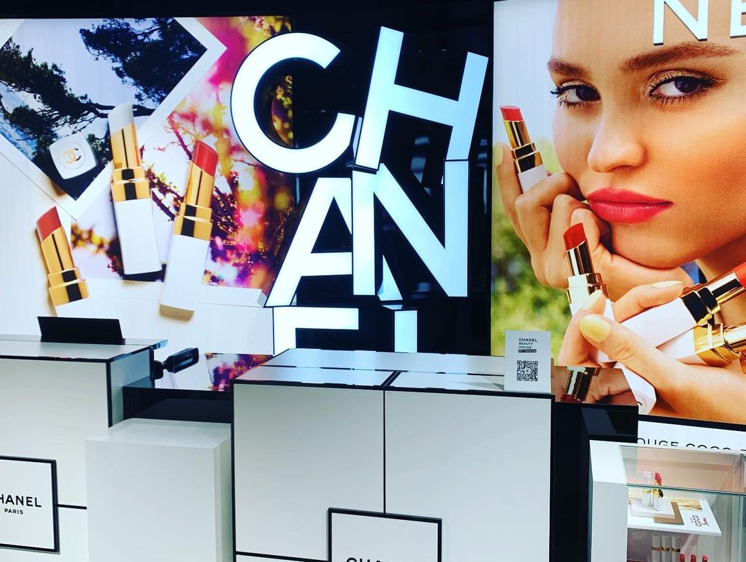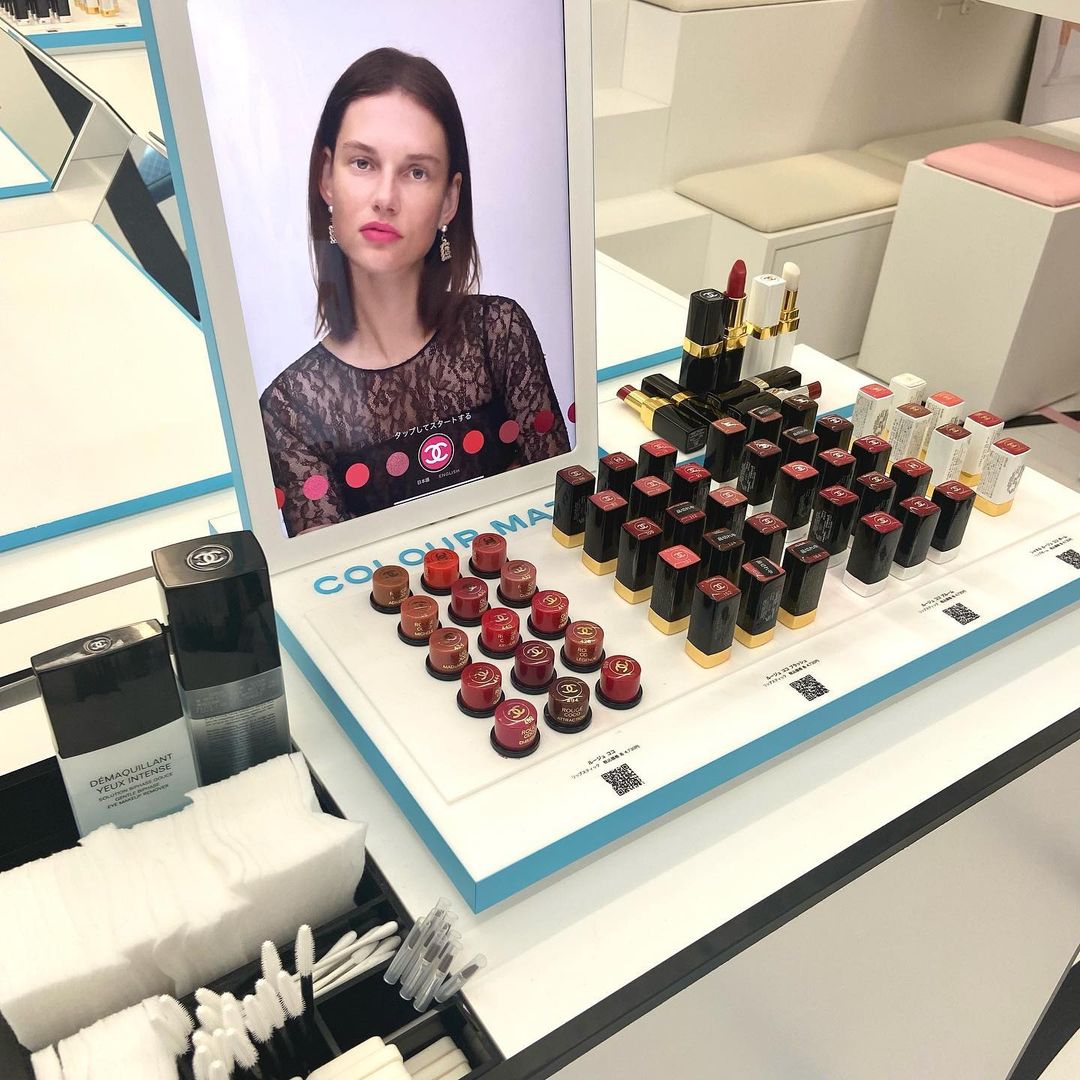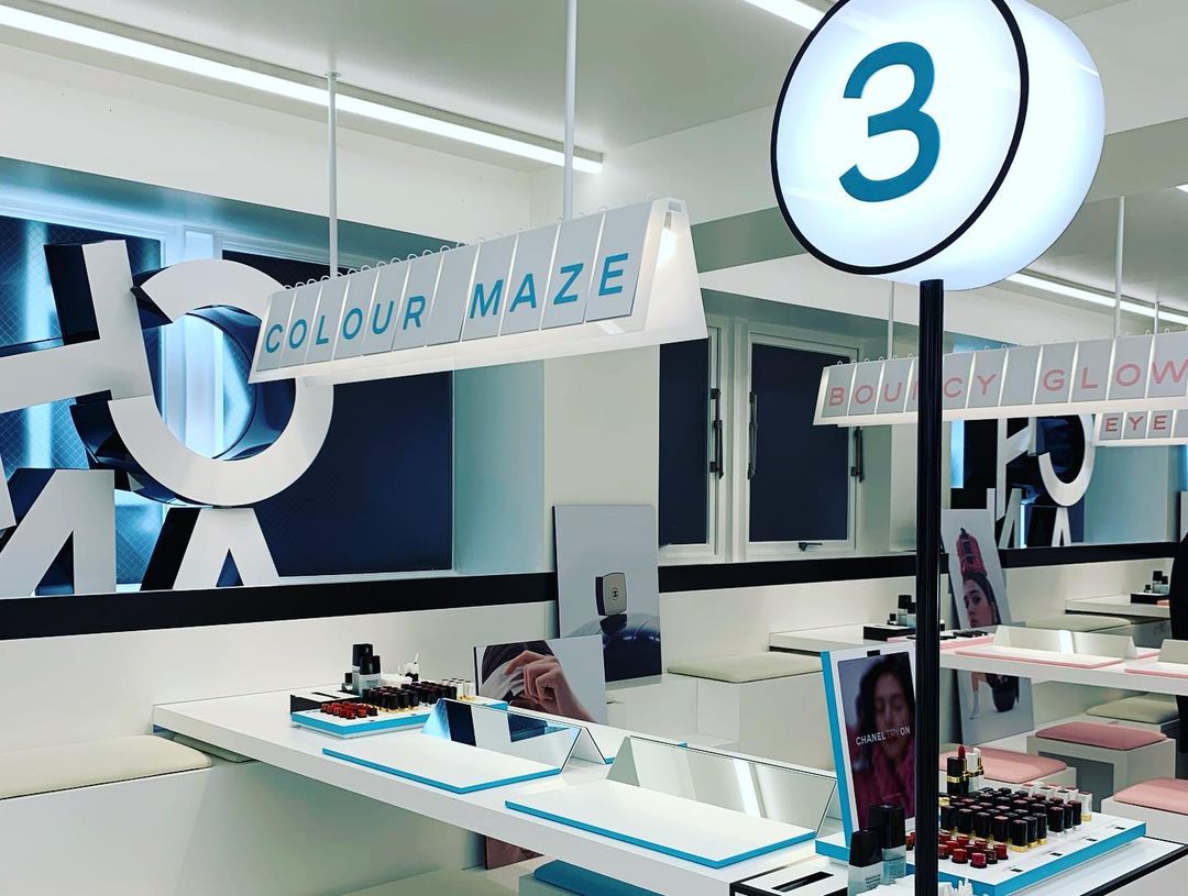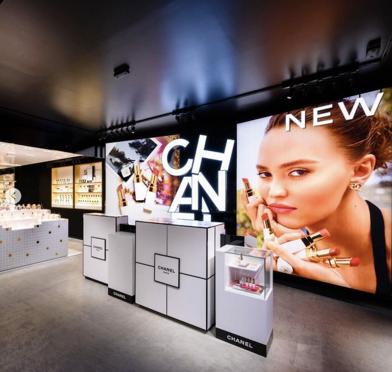 全白門市法式設計高貴典雅,內部空間超過150平方公尺,共有二層,空間感十足!底層擺滿CHANEL所有系列及色號的化妝品、香水、護膚品,琳瑯滿目的產品令人目不瑕及,最新推出的2022年夏季彩妝系列新品亦處於在當眼處,可以享受體驗式購物。