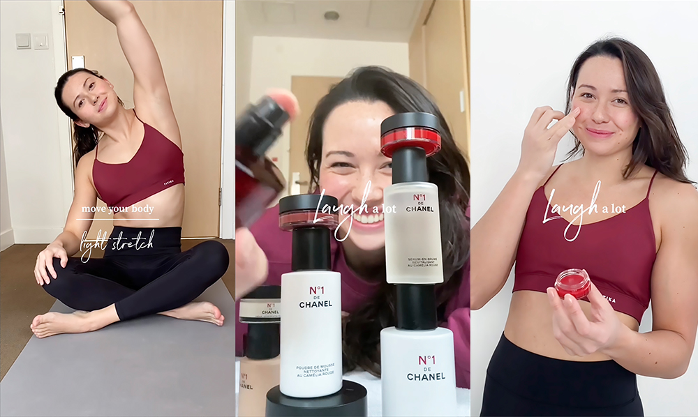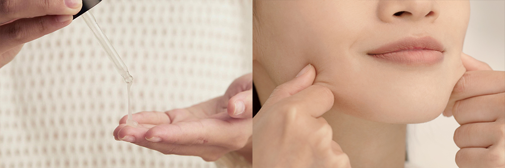 小編與何詩蓓一樣,最愛很快被皮膚吸收的CHANEL一號紅山茶花精華液質感,用後肌膚水潤,毛孔更細緻。將精華塗開後,小編喜歡用「點壓」方式全面按摩,之後大家可以沿腮邊用拇指和食指以「一捏、一扭」的動作向上按摩,由嘴角按摩至耳際,再由鼻側按摩至顴骨。小編發現輕輕地 「搣」和提拉,會令保濕滋潤效果提升得更高!過程會針對刺激血管,增加肌膚帶氧,喚醒肌膚,減退皺紋,加強肌膚緊致效果,令面部肌肉更加健康靈活,可以說是幫面部做運動哦~ 還有不要忘記頸部都要做足保養功夫!