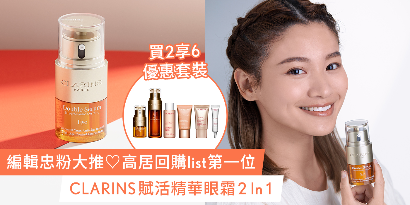 最令人興奮是CLARINS準備了多個優惠套裝給大家~買2享6,當中更有超過八成女士認同的全方位年輕double combo:賦活明眸嫩肌套裝︰包括皇牌賦活雙精華+賦活精華眼霜2 in 1,除了眼睛,全面肌膚都逆轉年齡。現在於官網購買更有加碼迎新折扣優惠,新登記會員首單滿$1,000輸入[WELCOME15]全單85折!現有會員亦可享3倍積分,於專門店更可即時換領修護精華水貨裝1支 (價值 $360) 或其他精選產品! 千萬不能錯過今次機會啦!立即選購︰https://cutt.ly/aFTdfWO