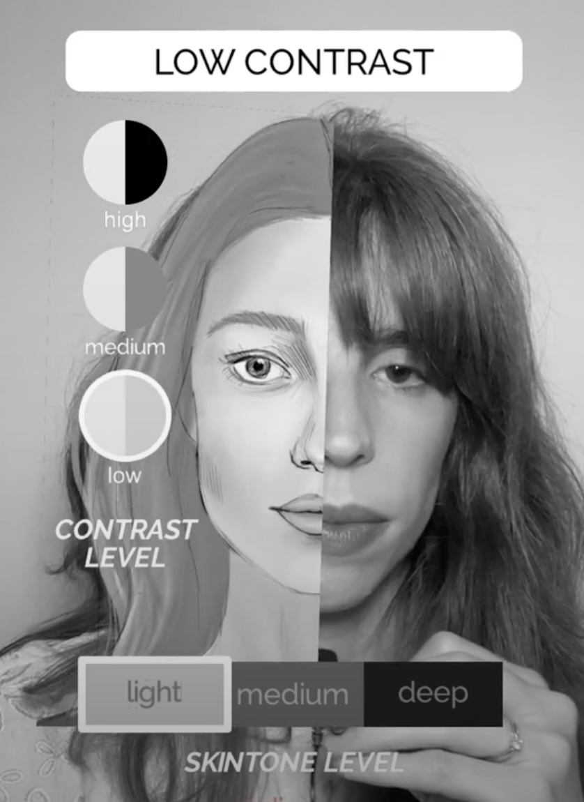 想畫出屬於自己風格的妝容,而不是一味模仿,不如試試「Contrast Makeup」分析!Contrast Makeup是一個由 TikTok 上的法國彩妝師 Aliénor 提出的化妝趨勢,主打根據你臉部的對比度(皮膚、眼睛和頭髮之間的顏色反差)來決定最適合你的妝容風格。你可以用黑白對比濾鏡去分析,整個過程簡單又實用,不用太專業也能快速應用,讓你可以快速判斷自己屬於哪種對比類型!