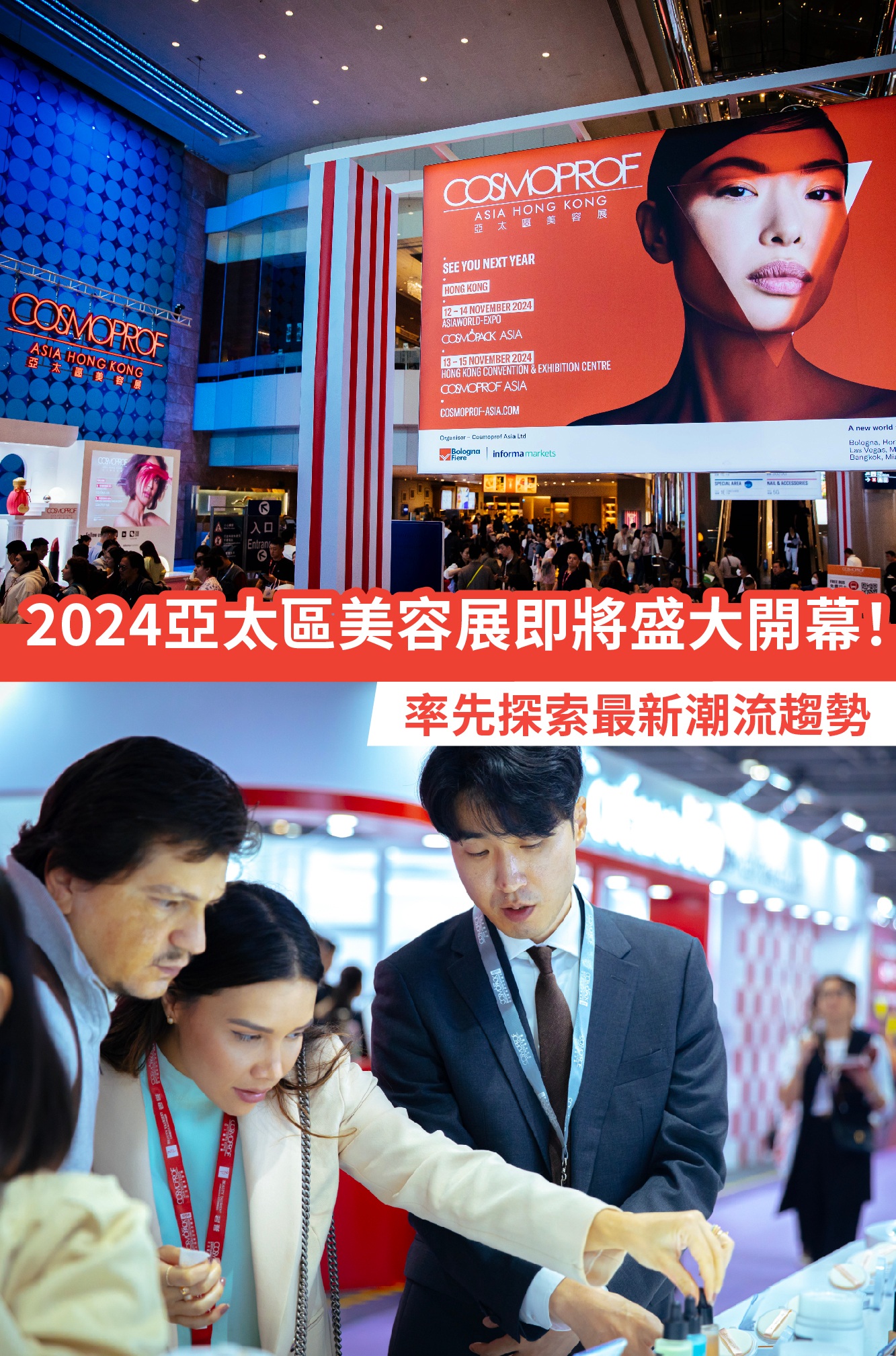 年度美容界盛事「Cosmopack Asia亞太區美容供應鏈展」及「Cosmoprof Asia亞太區美容展」強勢回歸,將於11月12至14日在亞洲國際博覽館,及11月13至15日假香港會議展覽中心開鑼!