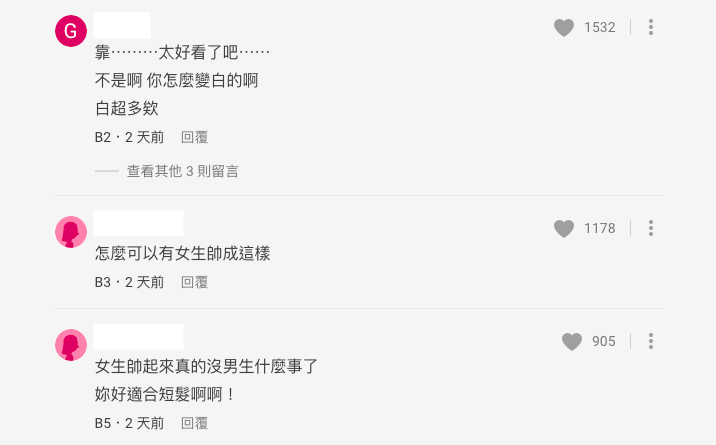 不少網友也表示樓主真的太好看了,還好奇她皮膚變白的方法。更有網友認為「怎麼可以有女生帥成這樣」!