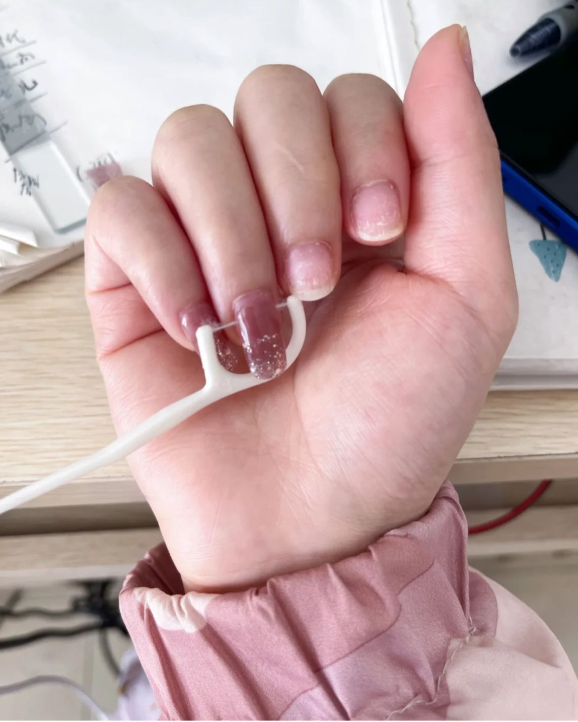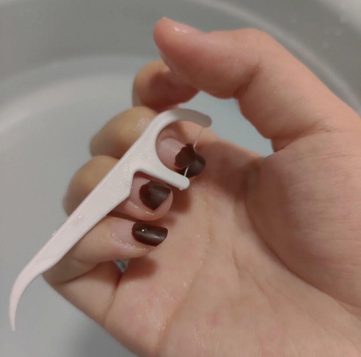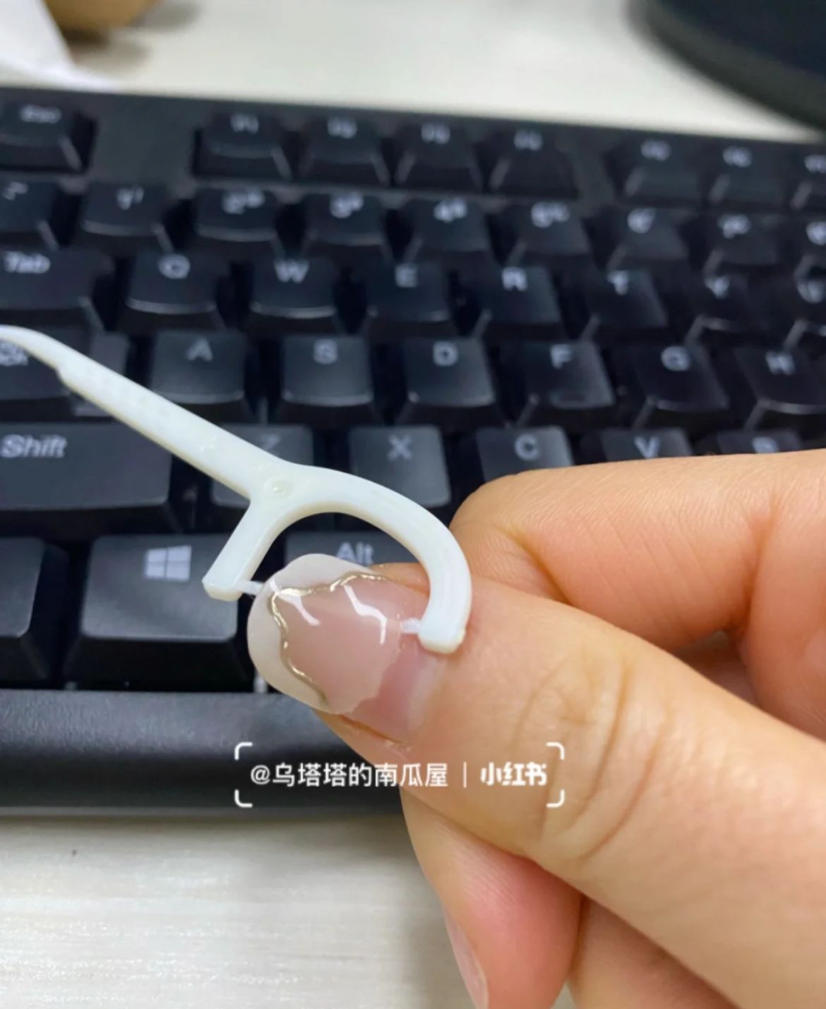 一條牙線即可暴力卸假甲+gel甲!浸熱水20秒再用牙線即可將假甲扯走