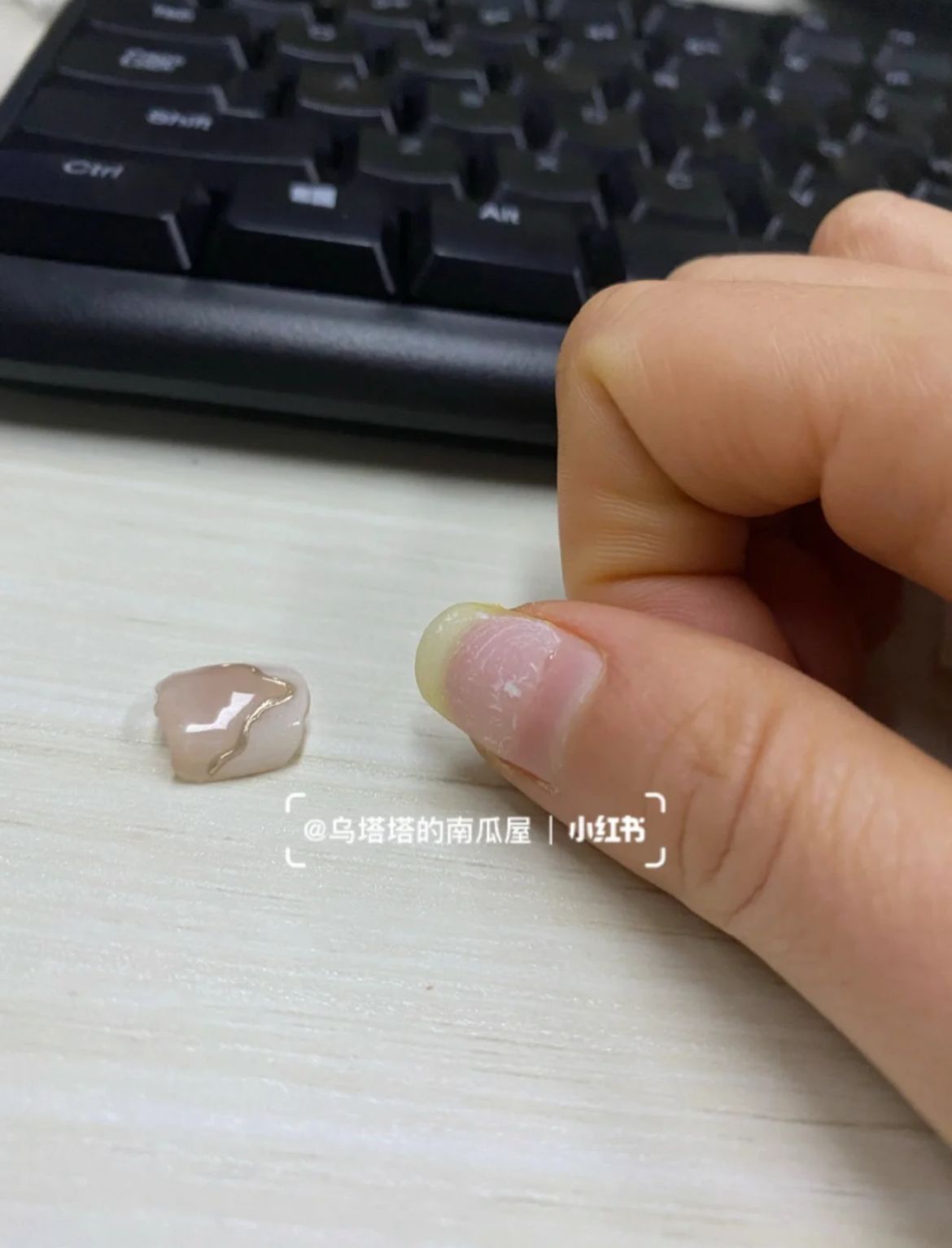 博主表示用牙線尖頭端可更快移除美甲,但相對更傷害甲面,把甲床撕走。用牙線的一端則可卸得更平整,將傷害減至最低。上述方法都不是最佳的卸甲方法,只是應急使用,亦會傷害甲床,深受假甲太長影響,造成生活不便的女生可衡量風險自行決定是否嘗試。
