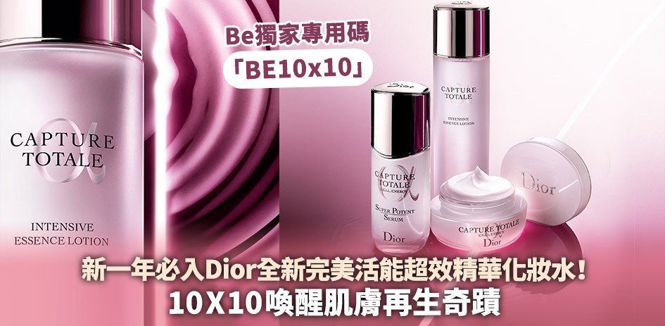 時間不等人,各位SIS把握機會開始肌膚保養,及早喚活肌膚!為了回饋Be讀者,凡購物滿$600當中包含任何Capture Totale系列產品,結帳時輸入獨家優惠碼「 BE10x10 」即可獲得神秘小禮物,心動想入手的SIS立刻click入以下官方網站購買啦~