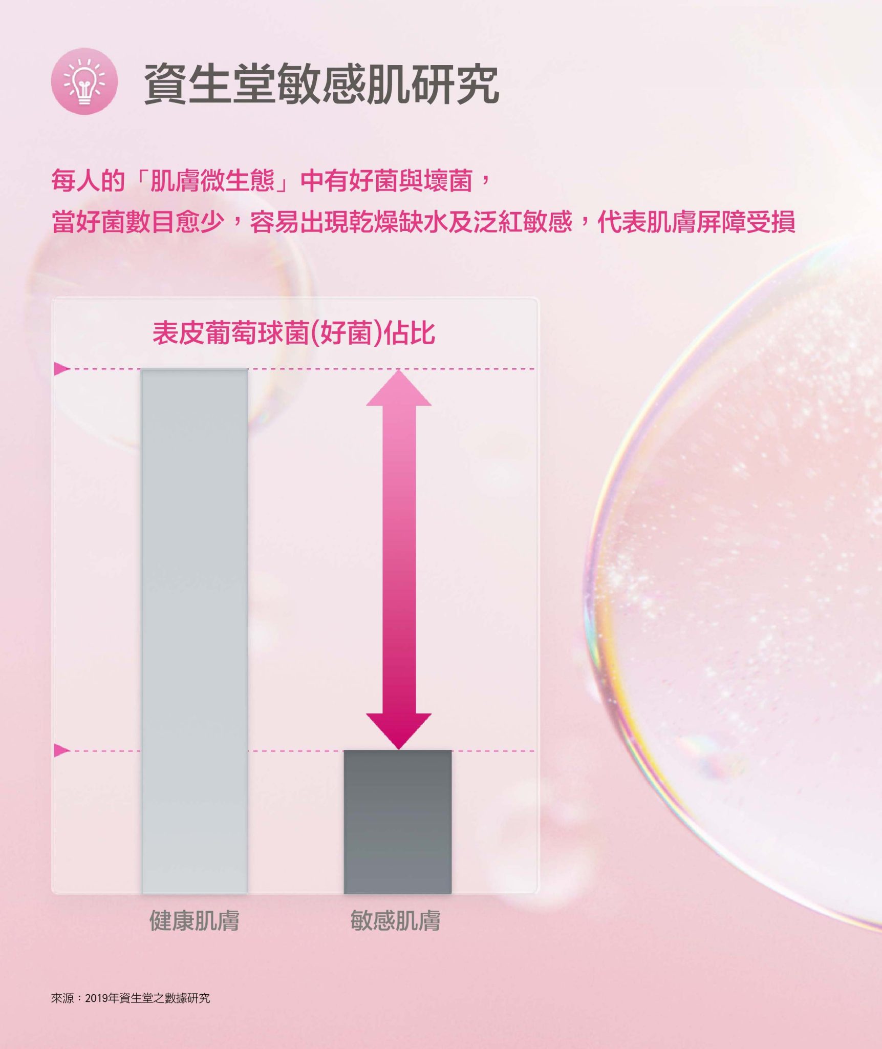 敏感肌之所以會更顯老,全因雙重衰老循環作怪!敏感肌本身角質層保護不足,肌膚自我修復能力變慢。當老化細胞逐漸積累,更易刺激肌膚製造更多老化因子,引起慢性炎症,造成細胞不斷損傷,加快肌膚老化。另一方面,基底膜受損亦會導致肌膚老化及造成結構上的變化,因為表皮幹細胞減少,令肌膚製造膠原蛋白的數量都會隨之下降,失去膠原蛋白的支撐,自然就令鬆弛+皺紋統統浮現!
