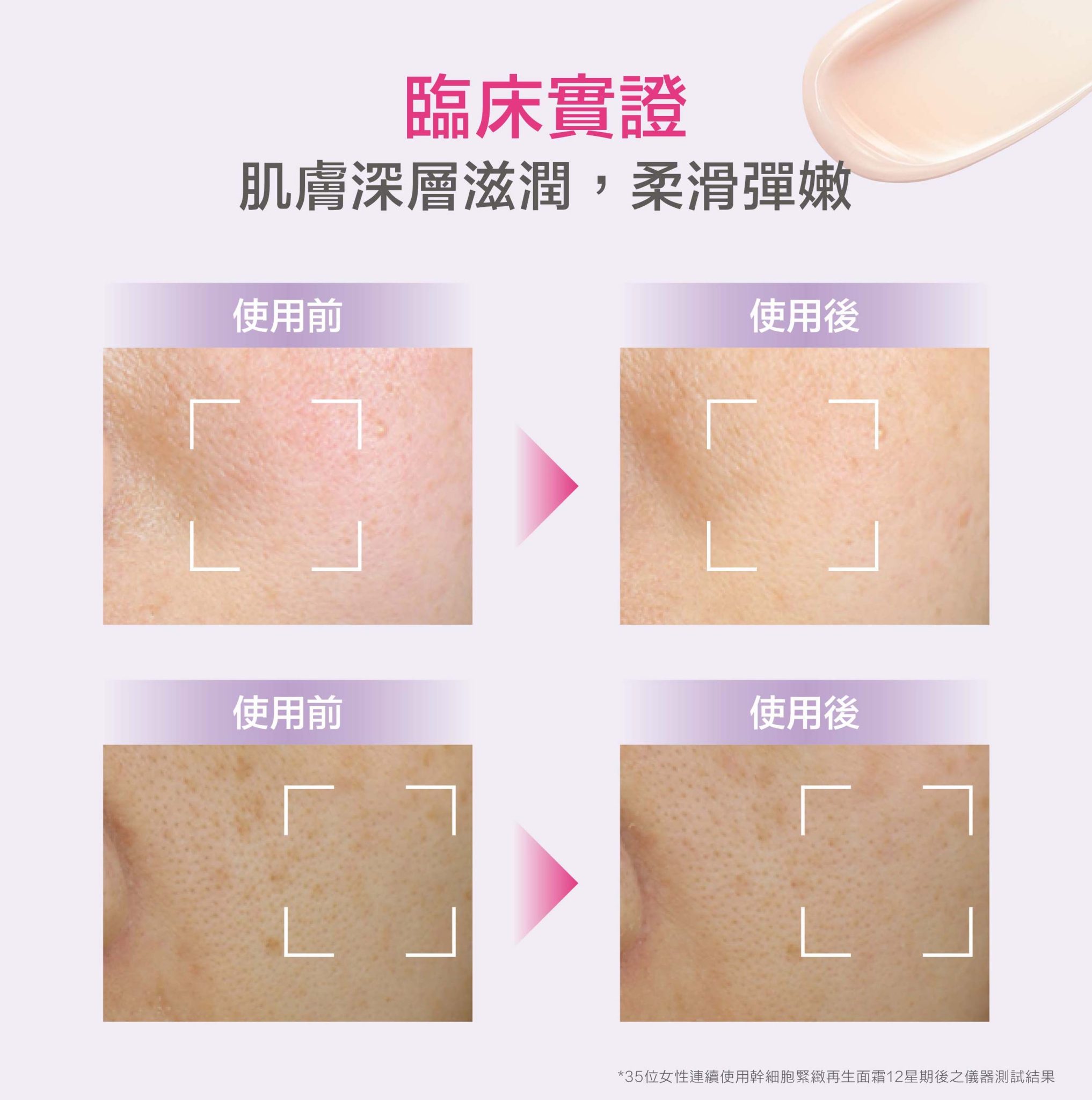 235位女性連續使用幹細胞緊緻再生面霜8星期後之傳器測試結果