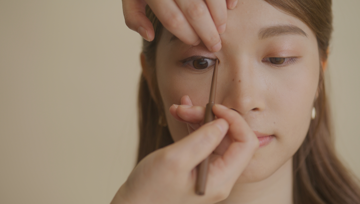 以#03自然啡眼線筆填補睫毛間的空隙,大約由內眼珠位置開始到眼尾來回上色,畫出上內眼線,令眼睛更有神。