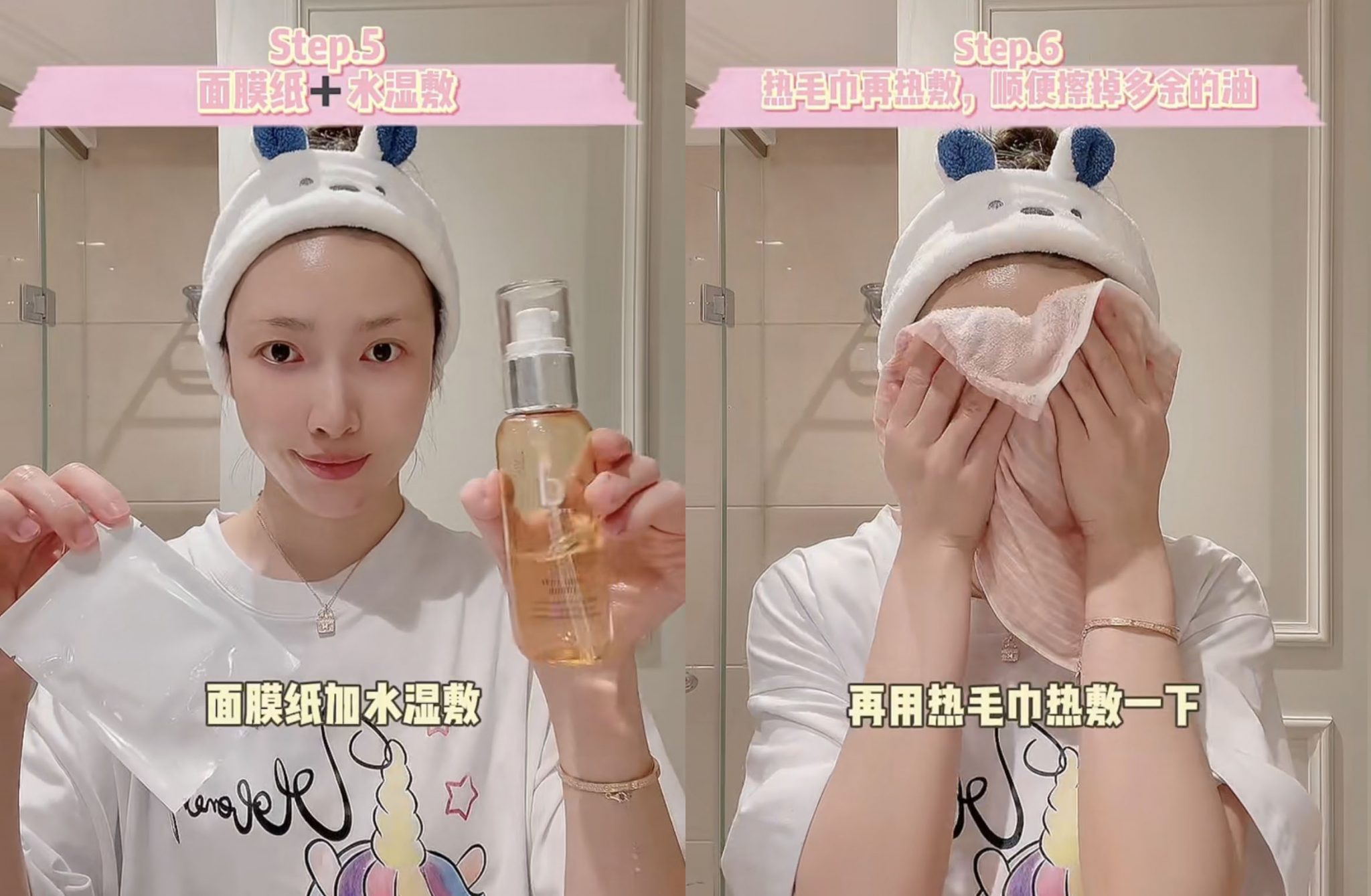 Step6:最後用熱毛巾在臉上蒸30秒,讓油充分吸收