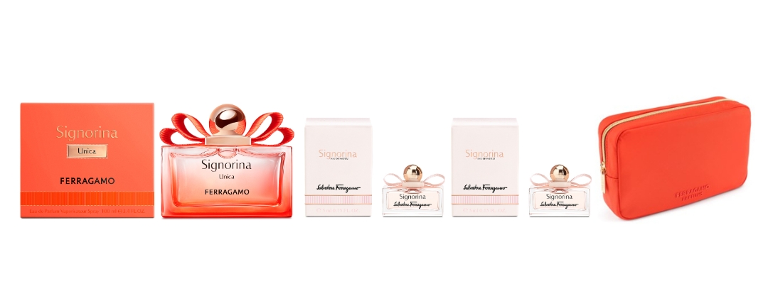 Signorina全系列一共有5款香調,除了全新Signorina Unica橙光伊人,更有耀眼的 Signorina Libera璀璨伊人、浪漫的 Signorina EDP芭蕾女伶、性感的 Signorina Misteriosa玄魅伊人和不羈的 Signorina Ribelle伊人黎貝拉,代表著不同個性的新時代女生,向世界展現獨有自我色彩,一起宣揚 FERRAGAMO 的獨特魅力!