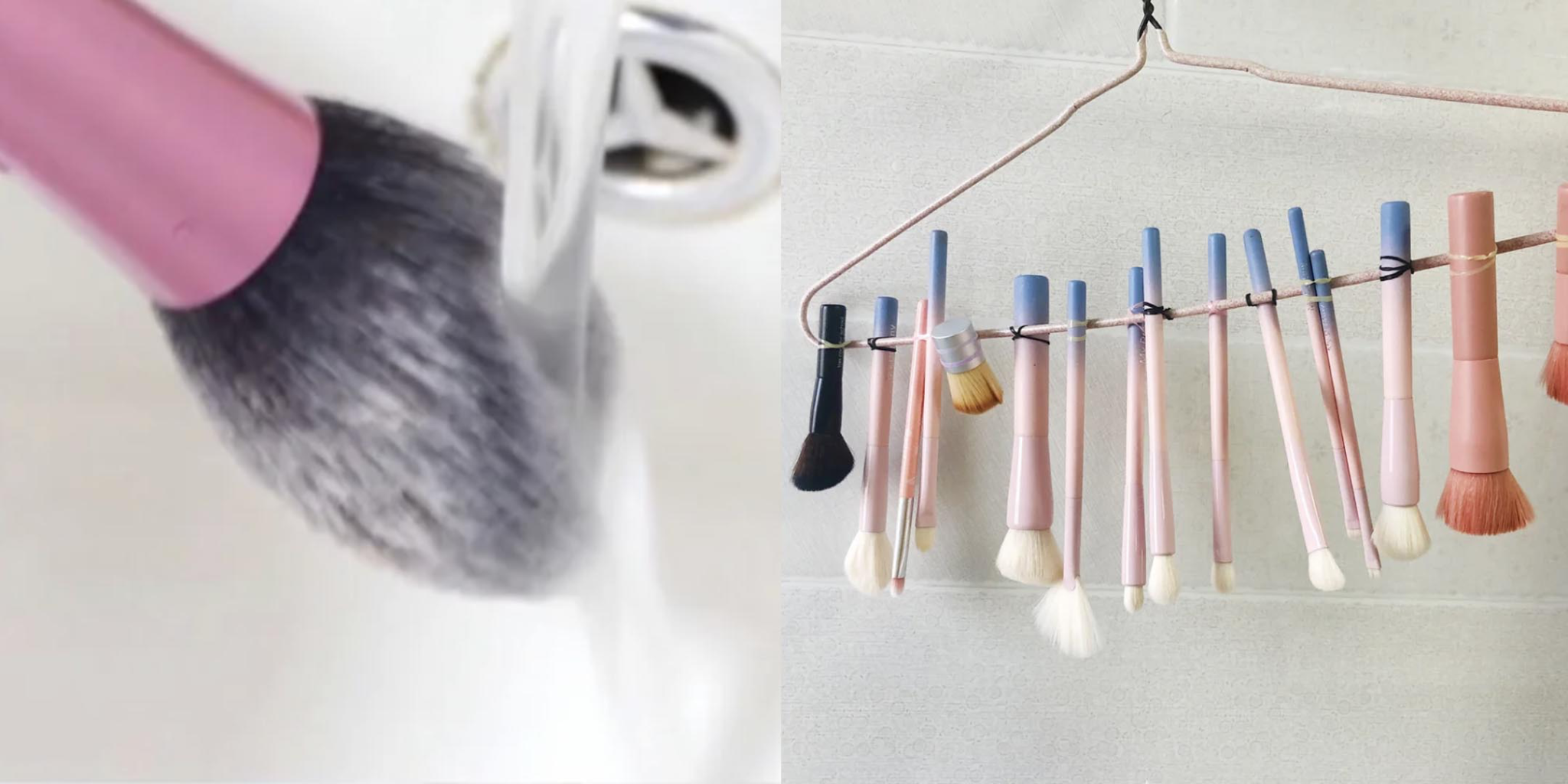 無論是清洗或是晾乾化妝掃,都需要順著掃頭都方向進行,以降低掃毛岔開的機會,同時在清洗過程中,避免掃毛以外的地方接觸到水。晾乾時可以利用橡根將化妝掃掛在衣架,避免將水倒流到筆杆,出現脫膠或發霉的情況。