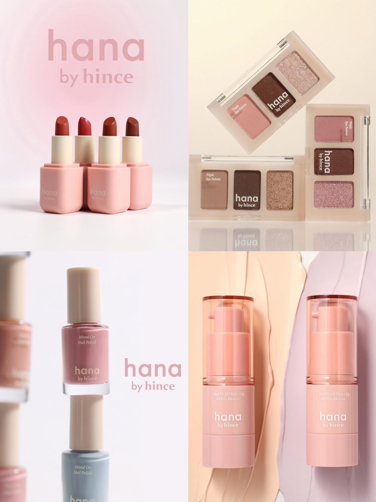 品牌名「hana」在日文中是指花(ハナ),而在韓文則是有「唯一(하나)」的意思,希望可以讓用家方便地購入高品質的化妝品,包裝則主要採用粉紅色,整體簡潔乾淨。