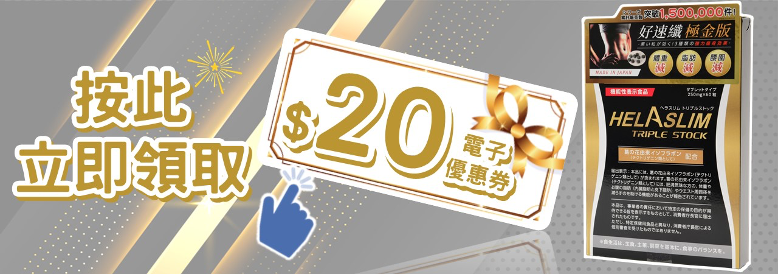 心動不如馬上行動,爭取時間盡快入手,以纖瘦體態過夏天~Helaslim®「好速纖極金版」萬寧門市及網店有售,立刻把握機會換領$20元電子優惠劵,多入手幾盒囤貨啦!