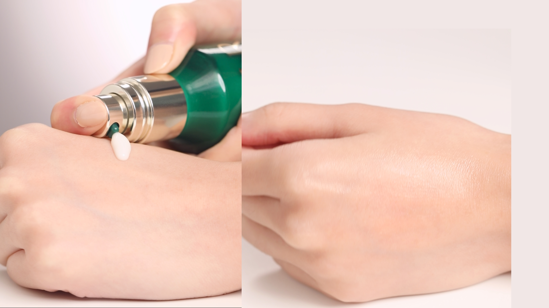 由上圖可見,精華露的輕盈易推乳液質感,一抹開變成透明水漾質感,迅速吸收,再滲透至肌膚底層,為底層肌膚修護及補水,令皮膚立即變得飽滿細緻嫩滑。塗抹後質感不油膩,就算是悶熱的夏天,都十分適合使用!