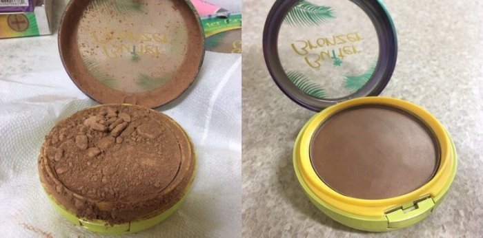女生們自開啟了化妝之路後家中一定有海量化妝品吧,有時候手滑令到眼影、腮紅、修容盤掉在地上,完整的一盤化妝品碎得徹底,掉扔又覺得可惜,但留下來又不知道該如何處理?一名女網友於Dcard上分享,自己的壓盤教學,將全碎的化妝品復活,只要是碎掉的質地,不論什麼產品都可以將它復原!