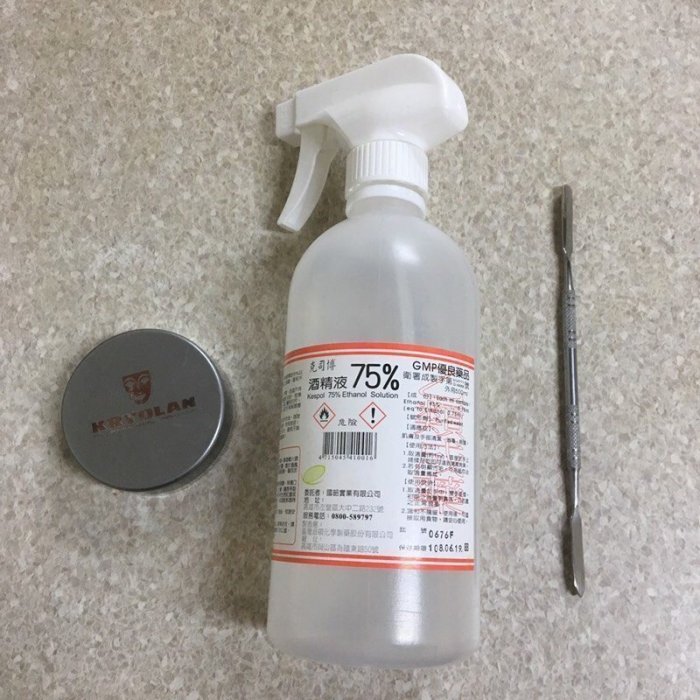 材料二:75%酒精 (用作消毒所有容器及混合碎粉)