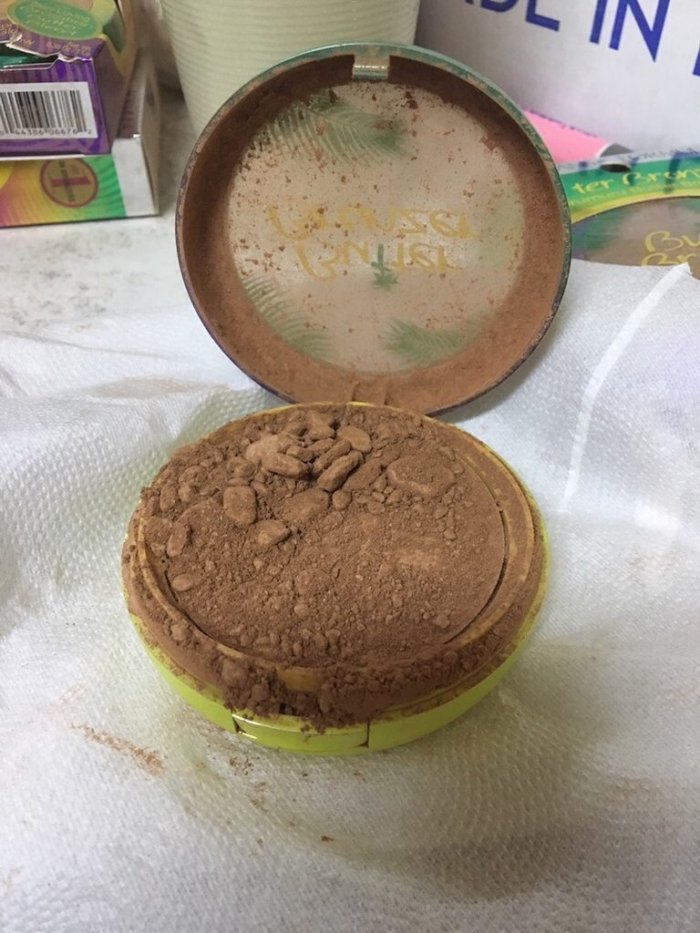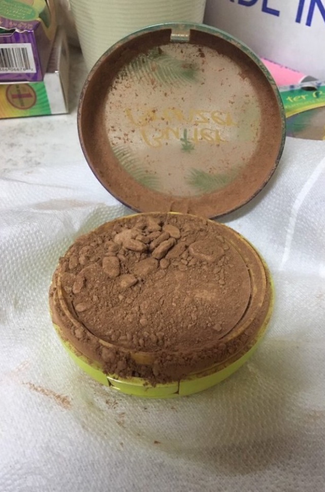 步驟一:將壓碎的碎粉倒到已消毒的容器(若果打破的化妝品沒有全碎,建議弄碎全部再重新組合)