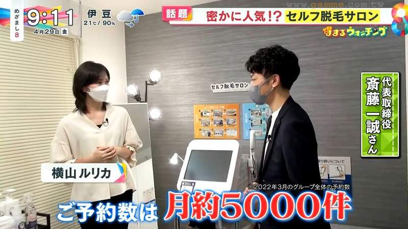 日本節目「めざまし8」最近研究了自助除毛店(セルフ脱毛サロン)的現象,於是到訪位於「セルフ脱毛サロン ハイジ」的東京新宿自助除毛店,詢問老闆後發現每個月預約的人數高達5000,以新型態美容店來說非常高!