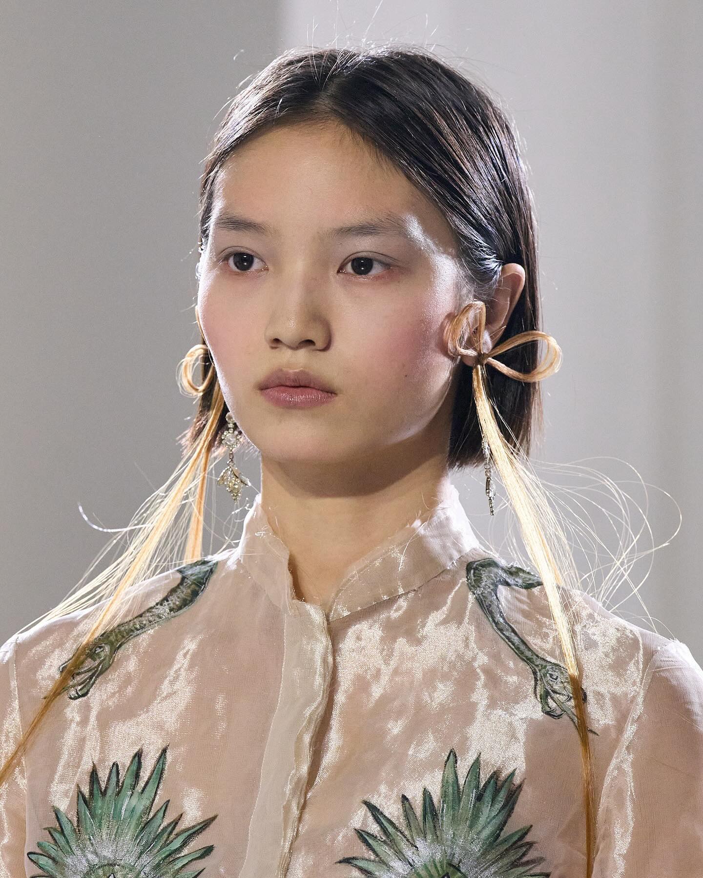 向來以擅長打造少女浪漫氛圍的 Simone Rocha,自去年9月宣布將成為 Jean Paul Gaultier 下一季的高訂客席設計師後,便令不少時尚愛好者相當期待二者之間會擦出怎麼樣的火花。而從剛落幕不久的時裝週秀場上,Simone 又再次向大家證明了女性性感魅力和 Coquette 美學是可以完美並存的。不過除了令人目不轉睛的華美造型外,模特兒們在系列中穿上、由 Antonin Mongin 設計的「頭髮耳環」也意外出圈。