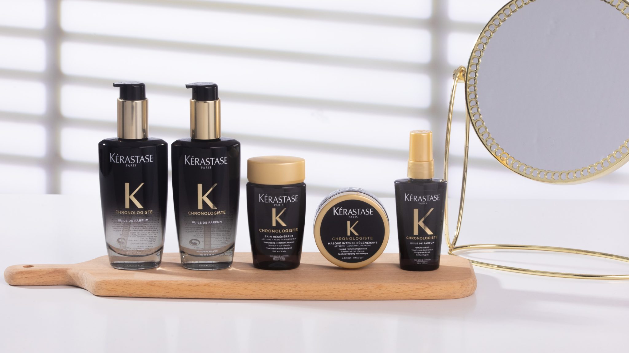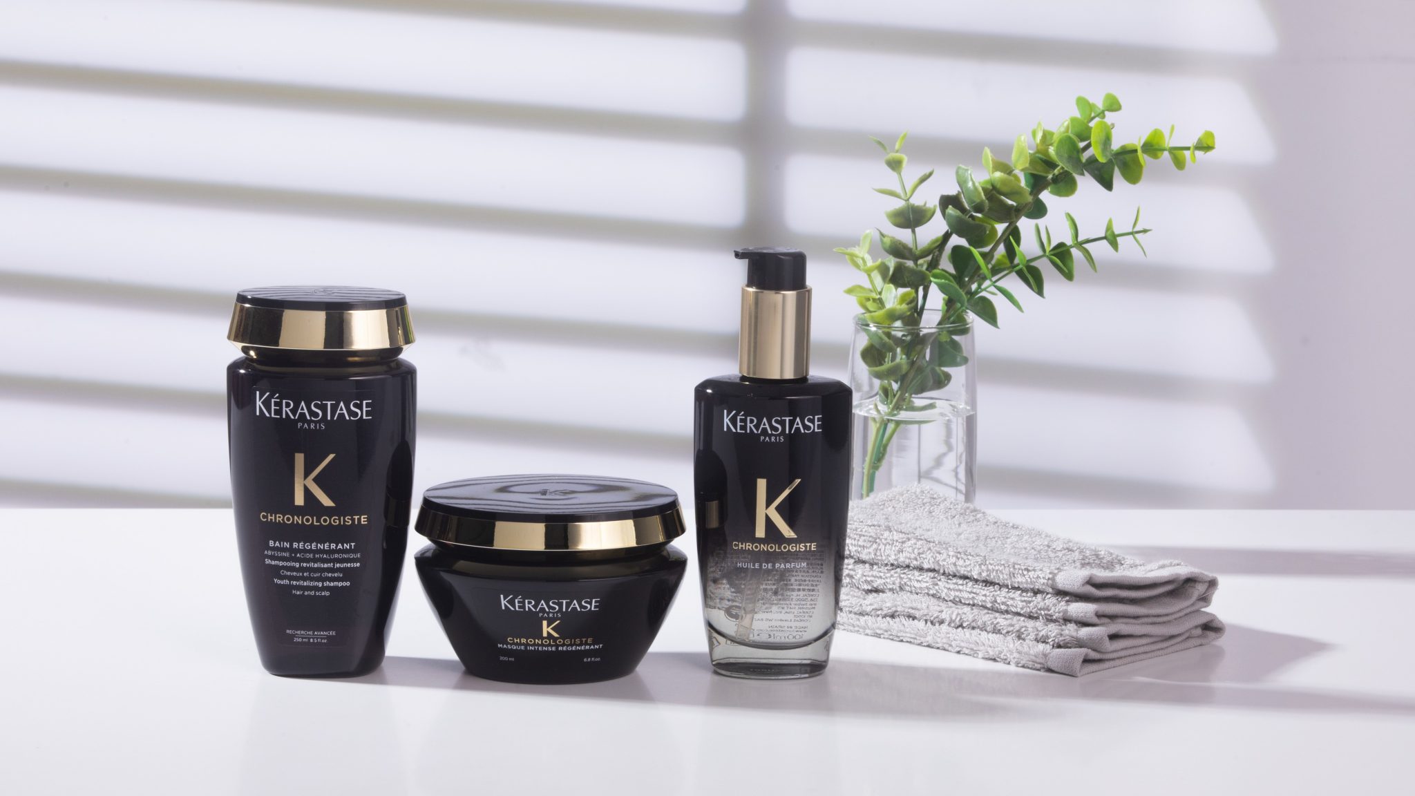 原來頭皮與臉部肌膚相連,頭皮肌膚鬆弛也會連帶影響面部緊緻度,法國頭髮頭皮護理專家KÉRASTASE就將頭皮當成皮膚護理,於護髮產品中加入高效護膚配方和成分,更以護膚步驟置入頭髮護理中,細心呵護頭皮頭髮,絕對是踏入初老女生必備聖物!由深層潔淨、頭皮及髮絲護理以至抗熱保護都一絲不苟,全方位照料頭皮頭髮需要~其皇牌CHRONOLOGISTE 逆時光至臻修護系列更是美編令髮絲留住青春的法寶,加入了透明質酸及維他命E等多種護膚配方幫助各位96小時長效對抗毛躁*,維持髮絲 48小時水潤光澤^,用後即時令髮絲飲飽水,充滿光澤,逆轉頭皮肌齡,以一頭柔順光感髮質keep住凍齡!