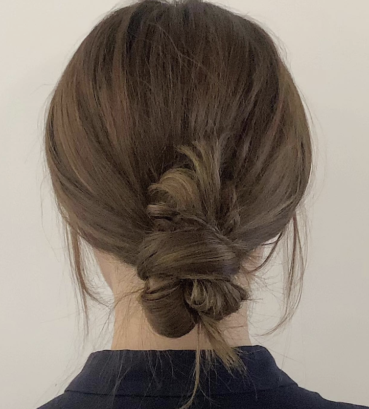 步驟三:再將剩下的頭髮沿住髮髻繞一圈,再橡皮筋綁好。