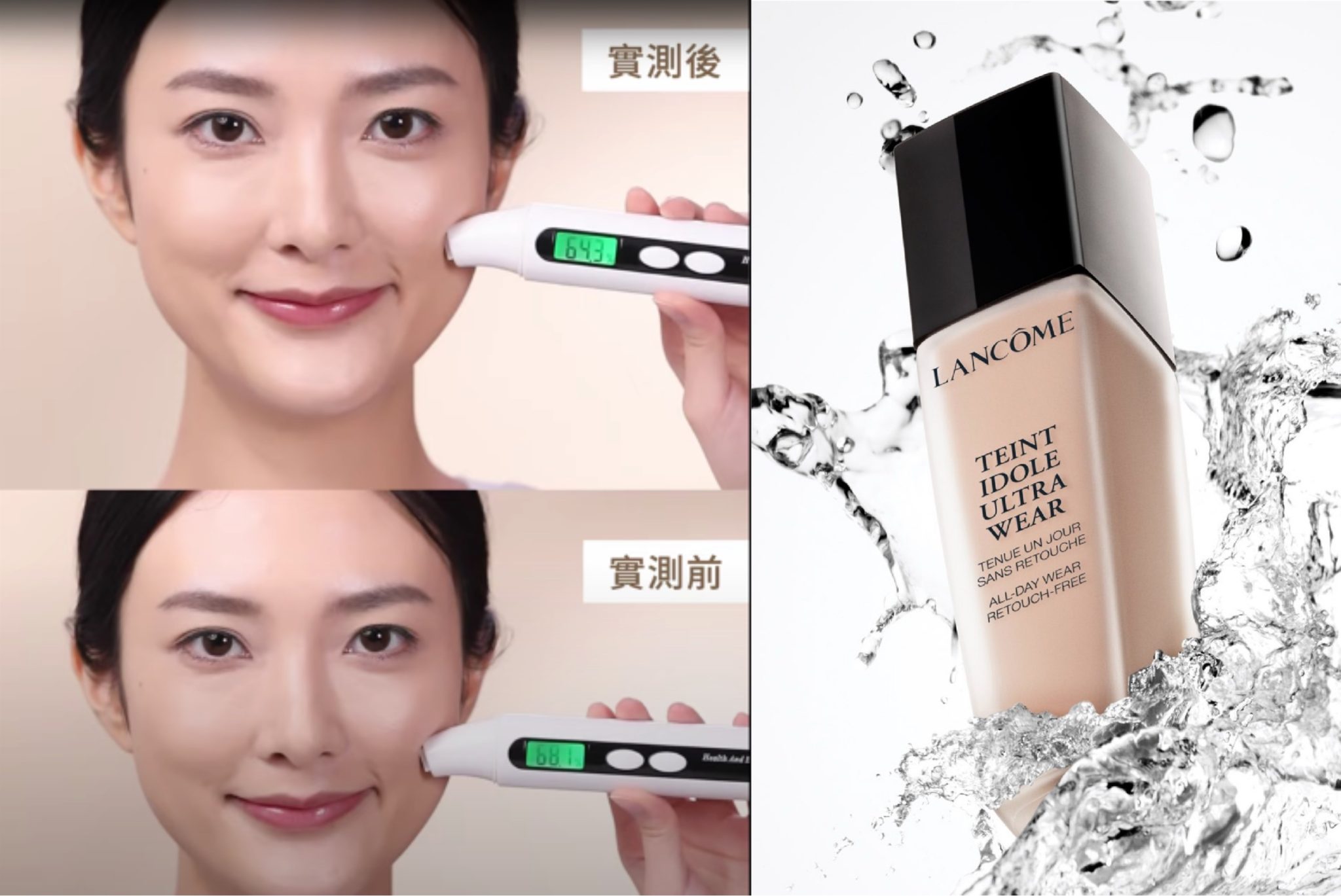 Lancôme #好評粉底加上抗汗和控油光**,做到24小時持久無瑕*。小編實測後發現粉底液真的做到全日持久,在模擬潮濕悶熱的環境下,底妝整天keep住細緻完美。抗汗、抗油**、修飾毛孔,三合一! 而且仲有防曬系數SPF38/PA+++,足夠應付戶外活動的陽光紫外線!睇下小編經過一日的工作後,皮膚水份仲keep到喎~