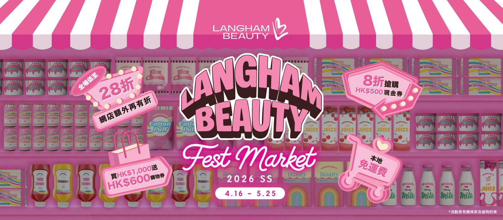 美妝盛事 LANGHAM BEAUTY Fest SS 2026 於 4 月 16 日 正式開鑼!每年美妝節的驚喜不斷,今年更是越買越平!不但集齊各大人氣美妝品牌限定套裝低至28折,更有玩樂+購物多重禮遇,未買先賞,買完再獎!門市同網店同步優惠~無論是想囤貨、清空 wishlist 都絕對是最佳時機!小編已經率先幫大家整理好攻略,照住做直接慳到最盡~