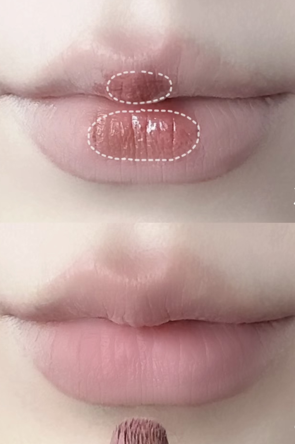 然後用霧面唇膏塗在上唇及下唇中間,把唇膏輕輕暈開。再用霧面唇膏二次疊加在上唇珠和下唇中間,範圍要比第一次稍為細一點,再次暈開。
