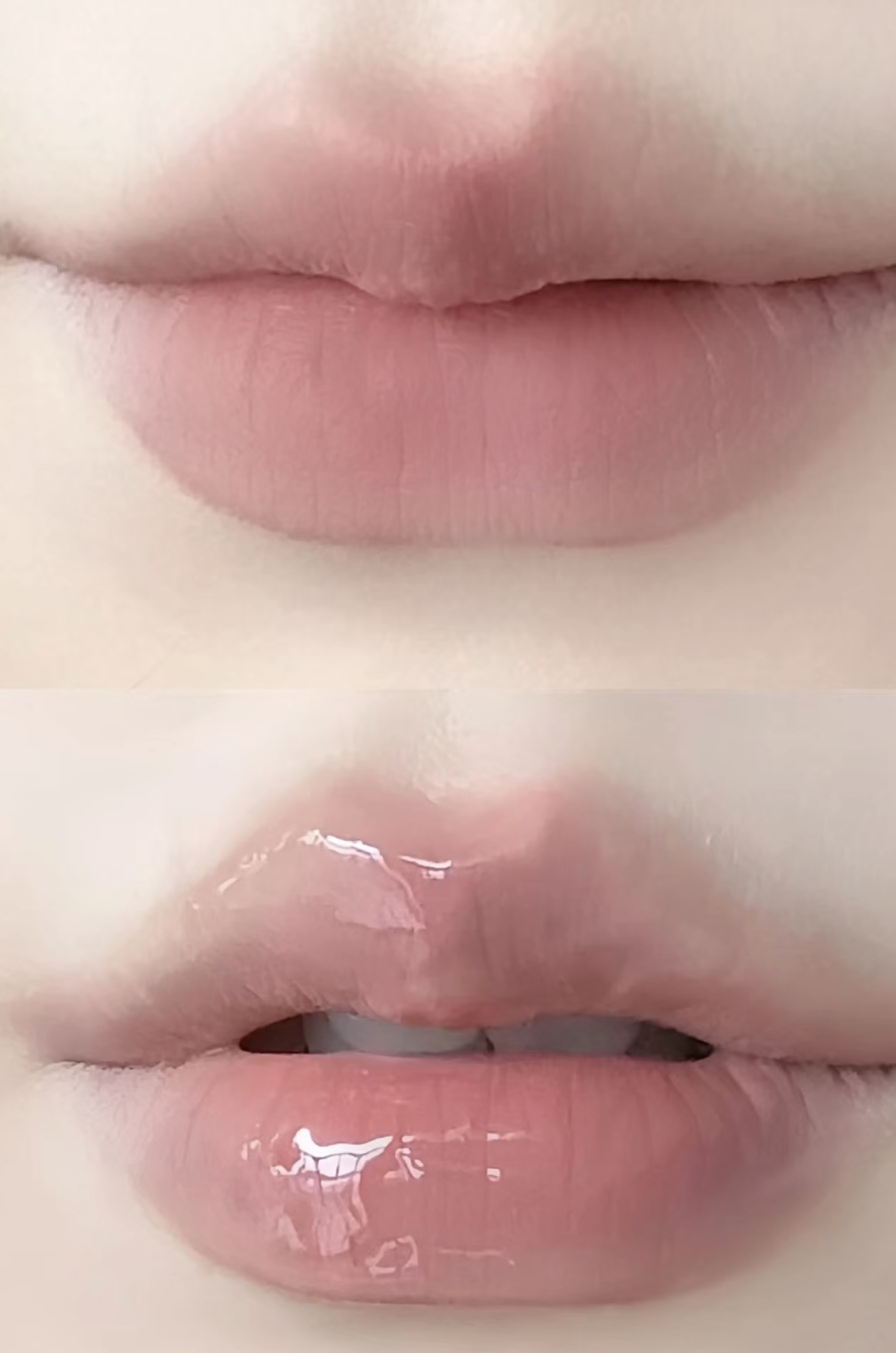喜歡鏡面唇妝的sis可以在上唇唇峰中間,以及下唇塗了唇釉的暈染範圍內點上水光唇釉,立體微笑唇就完成啦!