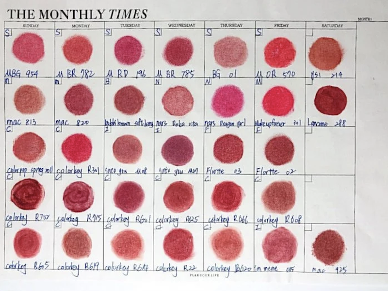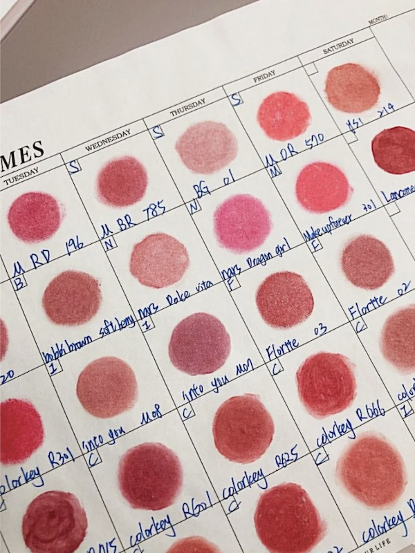作為美妝控的SIS想必一定入手為數不少的唇膏吧,不過家中海量的唇膏,反而導致選擇困難症發作,而且太多唇膏更難從中挑選當天想用的唇膏,加上肉眼可見的唇膏芯色調與搽出來的唇色有所出入,若果有方法可以令唇膏一目了然的話,就能令一眾美妝控更方便!台灣一名「紀錄控」女生喜歡紀錄生活中的大小事,於是研發出超療癒的唇膏記錄方式,並於dcard分享。