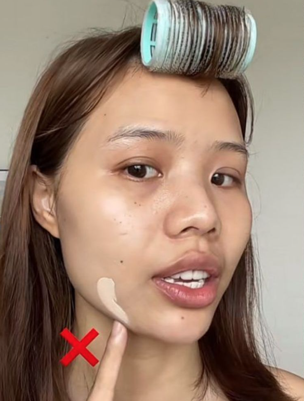 上粉底時建議先用化妝水噴濕美妝蛋,再按壓推開,就能打造輕薄底妝! 注意底妝用量可較集中於臉頰、臉周較少,美妝蛋餘下的粉底液可帶到脖子上,解決色差問題。若果完成底妝後尚明顯的淚溝、法令紋無法遮蓋,可再使用小號粉底刷局部疊加一層粉底,保留原生肌膚的紋理和光澤。